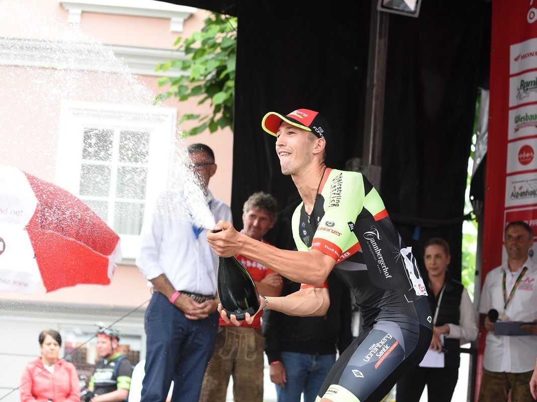 Der Deutsche Jannik Steimle siegt beim internationalen Radkriterium in Hohenems in eindrucksvoller Manier