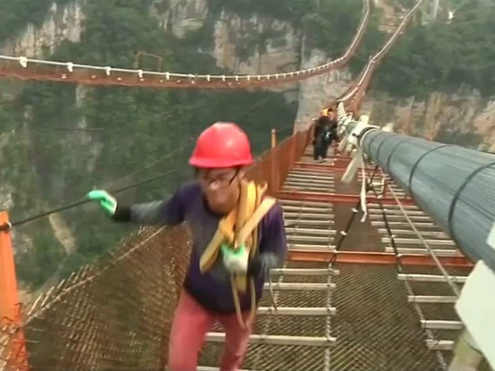 Die Brücke wird über einen Canyon im Zhangjiajie National Park führen und rund 34 Millionen Euro kosten. Architekt des Projekts ist der Israeli Haim Dotan. 430 Meter Länge sind geplant, in 300 Metern Höhe soll es über den Canyon gehen. Arbeiter haben bereits das Fundament und ein Drahtgerüst aufgebaut.