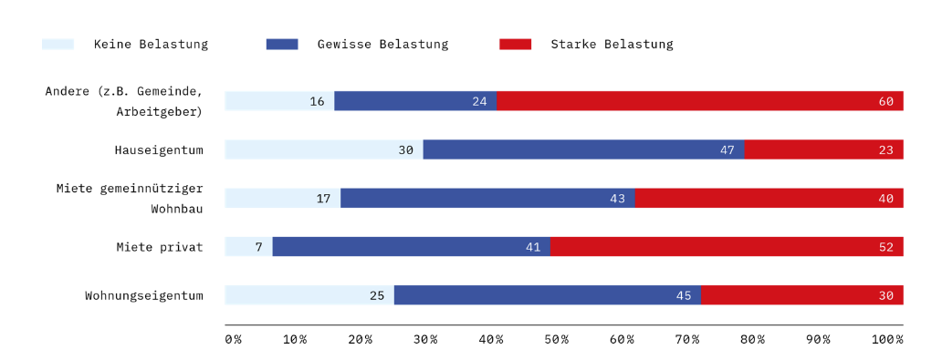 Zwei Drittel sagten, dass ihre Wohnkosten zu hoch und ungerechtfertigt seien. 43 Prozent fühlen sich dadurch belastet, 40 Prozent sogar stark belastet. "Vier von fünf Umfrageteilnehmer:innen ächzen unter den hohen Wohnkosten", stellt AK-Präsident Bernhard Heinzle fest und führt weiter aus: "Das kann so nicht bleiben."