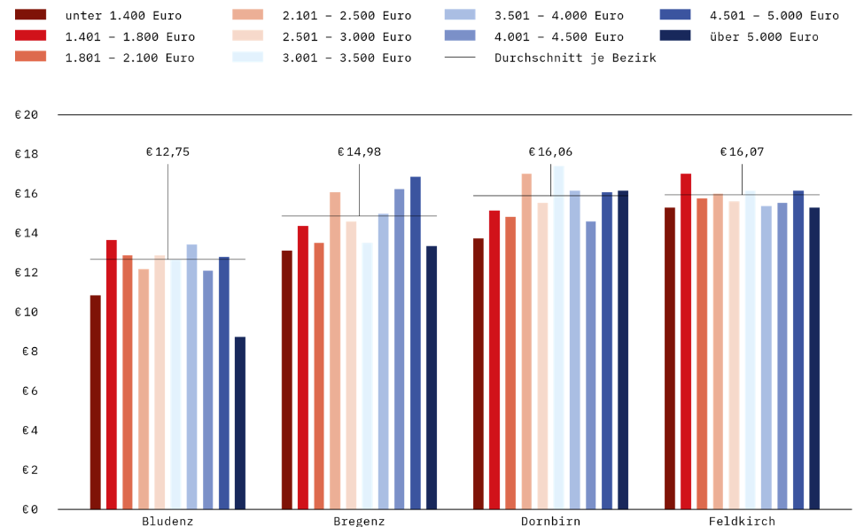 Die Vorarlberger müssen einen immer größeren Anteil ihres Haushaltseinkommens für Wohnkosten aufwenden. Laut der aktuellen Wohnumfrage der AK Vorarlberg unter 3.000 Personen mit Hauptwohnsitz in Vorarlberg ist dieser Anteil von 28 Prozent in 2018 auf 33 Prozent in 2024 gestiegen. Ein Drittel des Einkommens geht also fürs Wohnen drauf – und das ist nur der Durchschnitt, einige zahlen einen noch größeren Anteil.