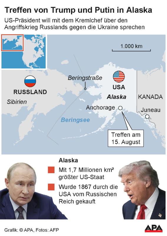 Das Treffen findet auf dem Militärstützpunkt Elmendorf-Richardson in Anchorage statt. Der Ort gilt aus mehreren Gründen als symbolträchtig: Russland und die USA teilen in Alaska eine Grenze. Der Internationale Strafgerichtshof in Den Haag hat zwar einen Haftbefehl gegen Putin ausgestellt, doch die USA erkennen das Gericht nicht an – damit droht ihm dort keine Festnahme. Historisch gesehen war Alaska zudem einst russisches Gebiet.