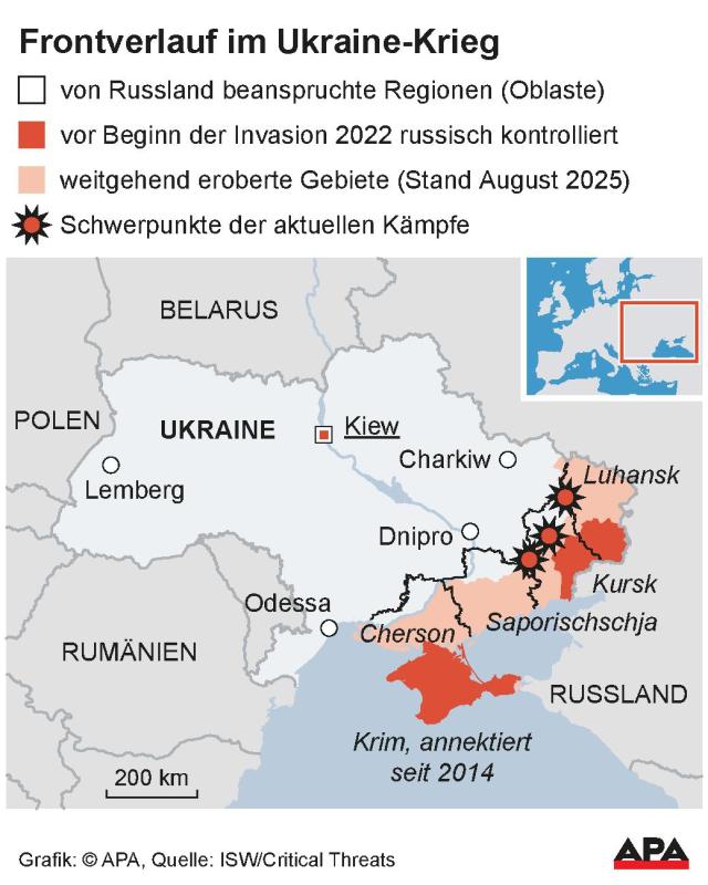Trump hat angedeutet, über einen Gebietstausch verhandeln zu wollen. Spekuliert wurde etwa, Russland könne dafür kleinere besetzte Gebiete in anderen Regionen aufgeben. Doch diese machen flächenmäßig nur einen Bruchteil aus. Ein solcher Tausch würde einen erheblichen Gebietsverlust für die Ukraine bedeuten.