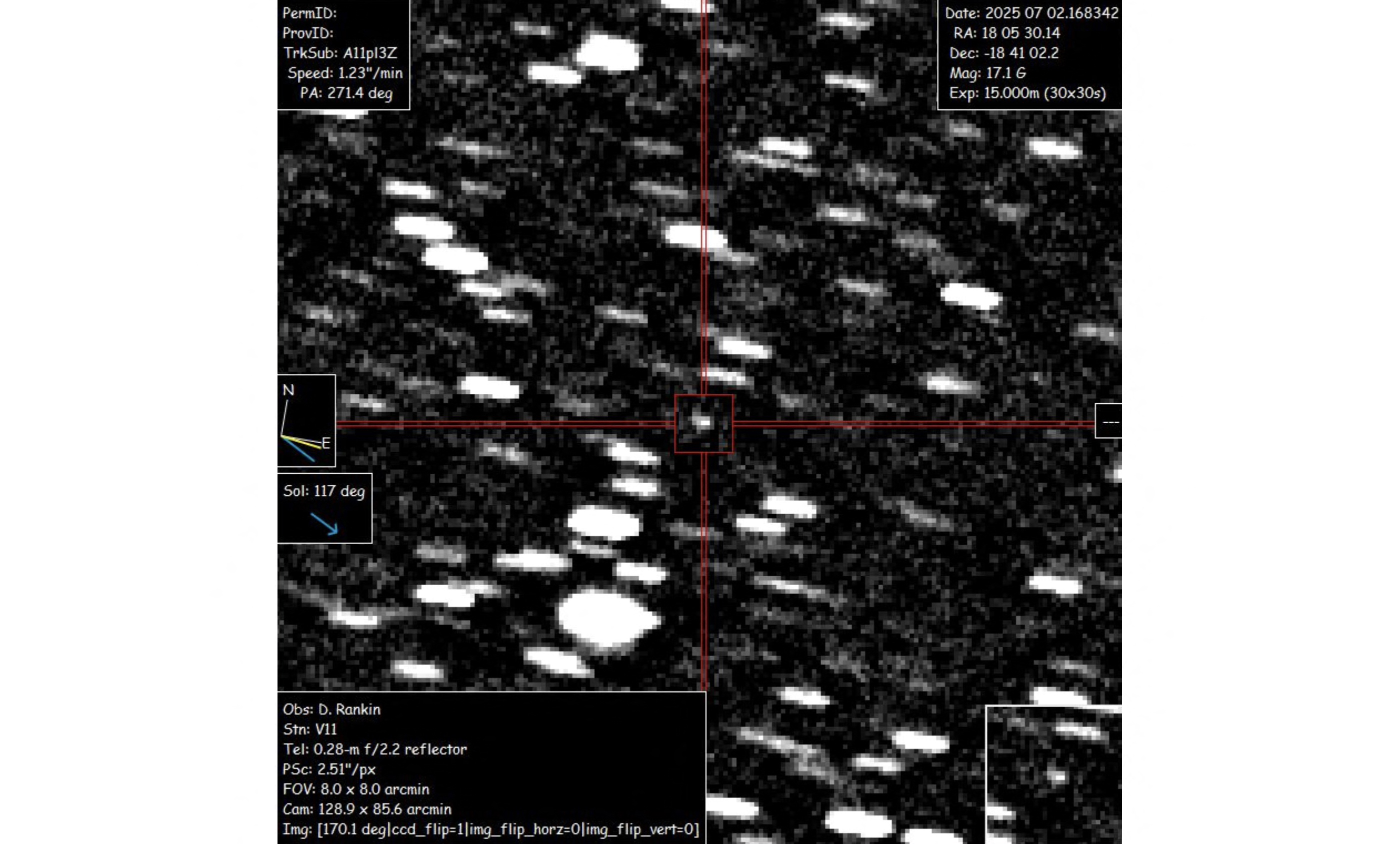 Interstellares Objekt 3I/Atlas, aufgenommen am 2. Juni 2025 von David Rankin am Saguaro Observatory – es zieht auf seiner Bahn durch das Sonnensystem innerhalb der Marsbahn vorbei. ©AFP