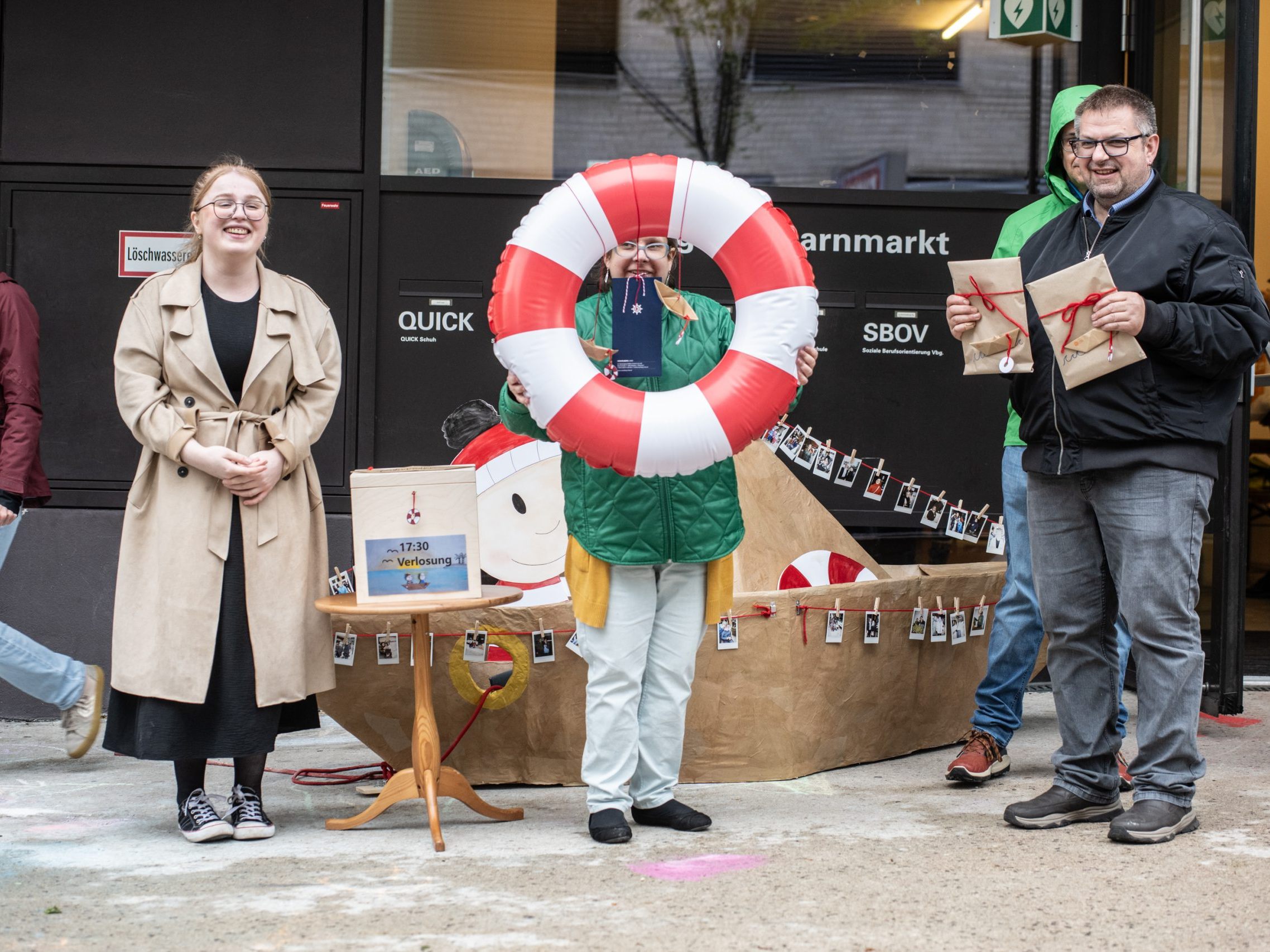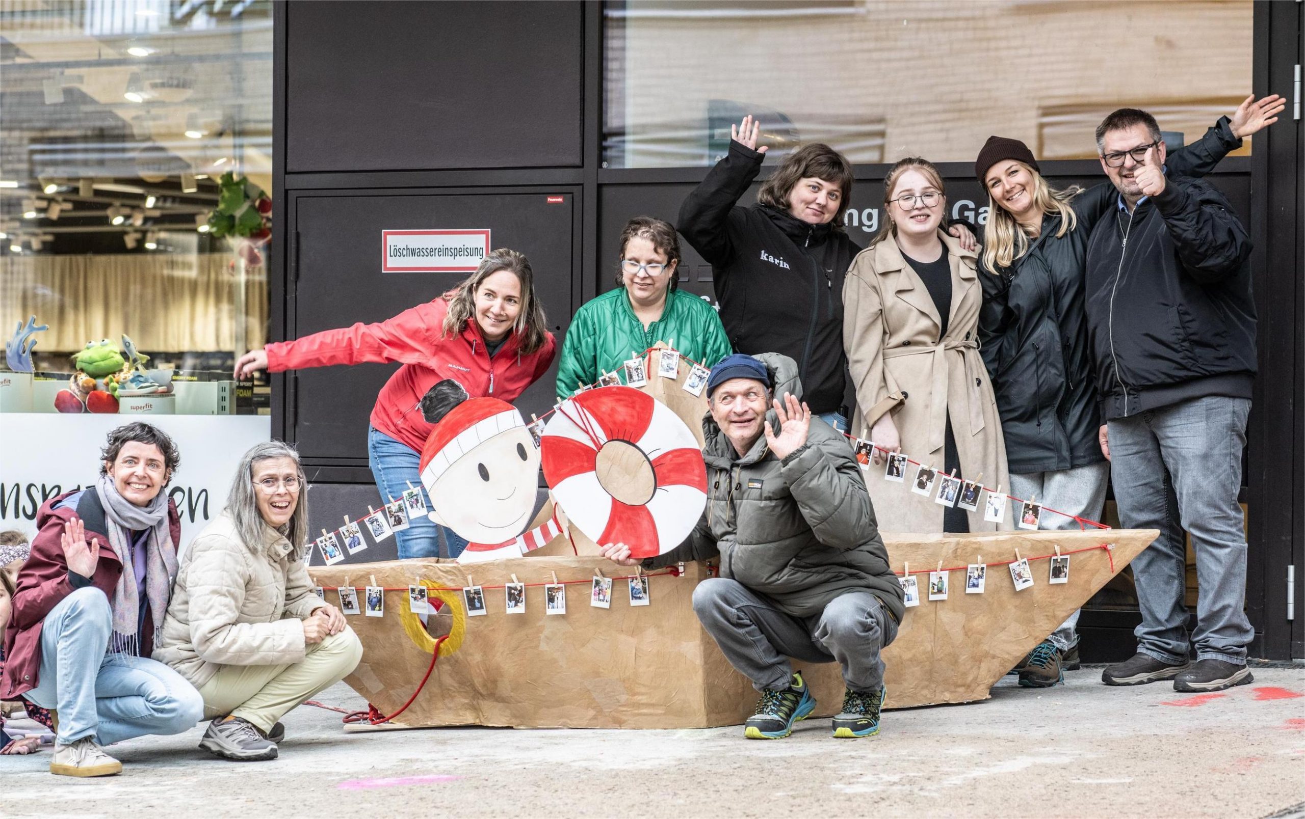 Das große Papierboot war Mittelpunkt der Aktion – ein Symbol für Zusammenhalt und gemeinsame Teilhabe. BesucherInnen gestalteten den Platz mit Straßenkreiden bunt, genossen Eis und nahmen am Quiz teil, bei dem eine „Kreuzfahrt“ auf dem Bodensee gewonnen werden konnte.