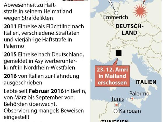 Amri hatte am 19. Dezember einen Lastwagen in eine Budengasse auf einem Berliner Weihnachtsmarkt gesteuert. Bei dem Anschlag tötete er zwölf Menschen, rund 50 wurden teils schwer verletzt. Wenige Tage später war er bei einer Polizeikontrolle in Italien erschossen worden.