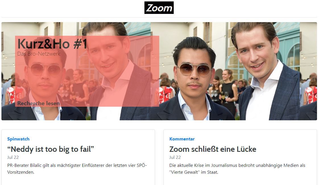 "Zoom", ein angebliches Recherche-Institut mit Sitz in Genf, versucht, in das Wahlkampfgeschehen einzugreifen. Auf Twitter wurde ein "journalistisches Projekt" über ÖVP-Chef Sebastian Kurz und den Unternehmer Martin Ho lanciert.