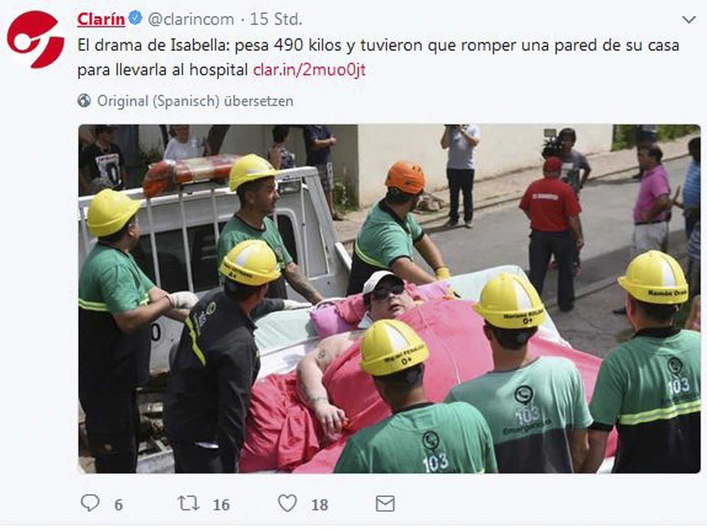 El drama de Isabella: pesa 490 kilos y tuvieron que romper una pared de su casa para llevarla al hospital https://t.co/RoJA64sfFj pic.twitter.com/93h0LIPWpw