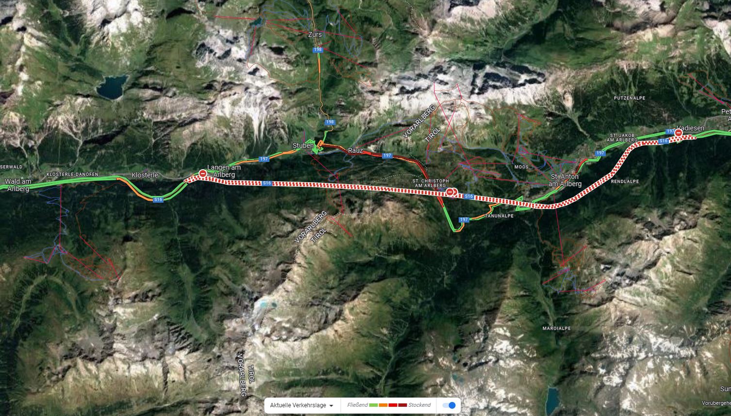 Durch die aktuelle Sperre des Arlbergtunnels gab es vorübergehend keine Straßenverbindung über den Arlberg zwischen Vorarlberg und Tirol.