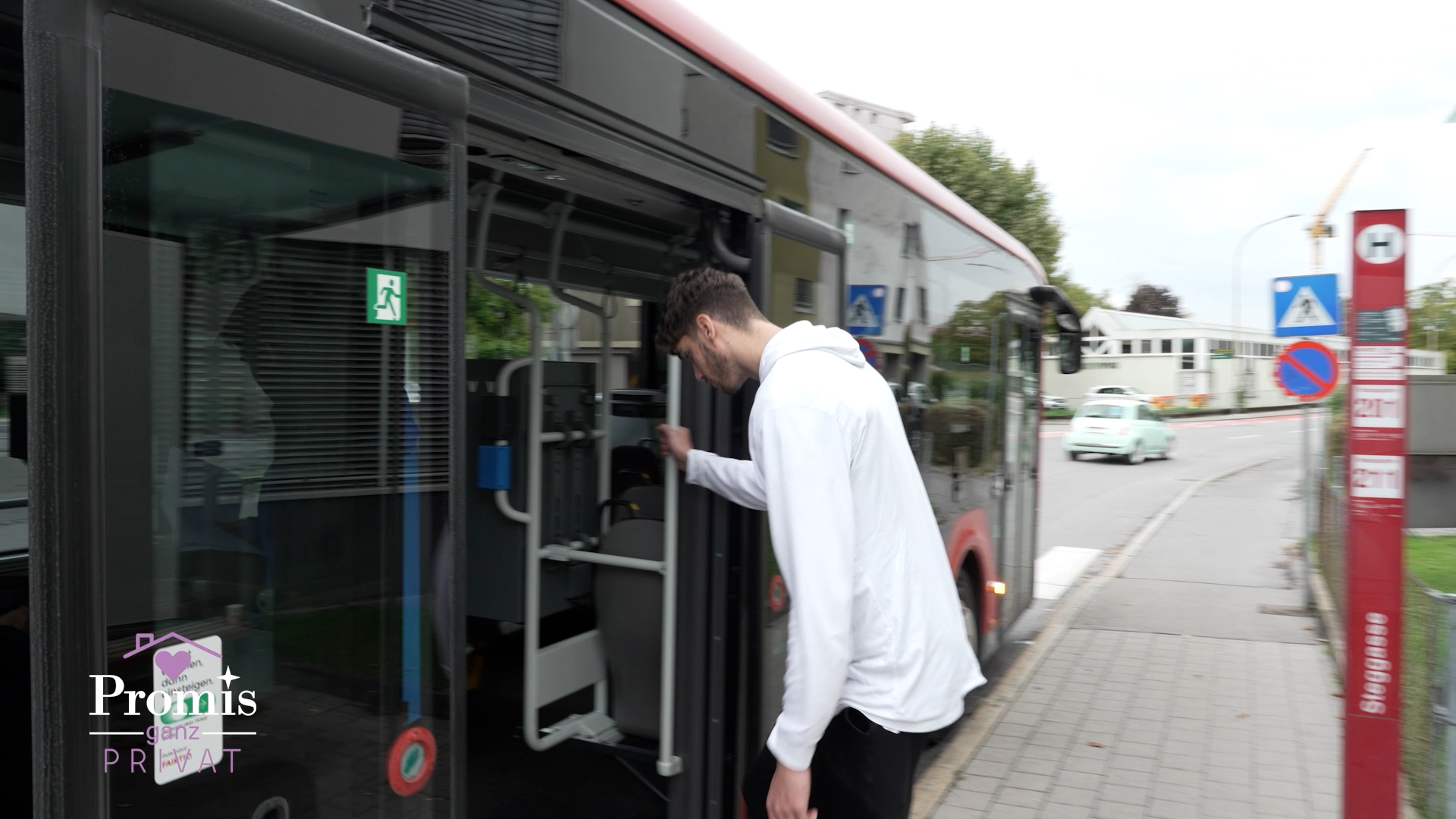 Sein Alltag im Ländle spielt sich auch viel im Bus ab. Egal ob Training, Einkauf oder Freizeit, Hupmann erledigt fast alles mit den Öffis. Bequem ist das allerdings nicht: Die Sitzreihen sind zu eng, die Beinfreiheit knapp bemessen. Meistens setzt er sich seitlich, um überhaupt genügend Platz zu finden.