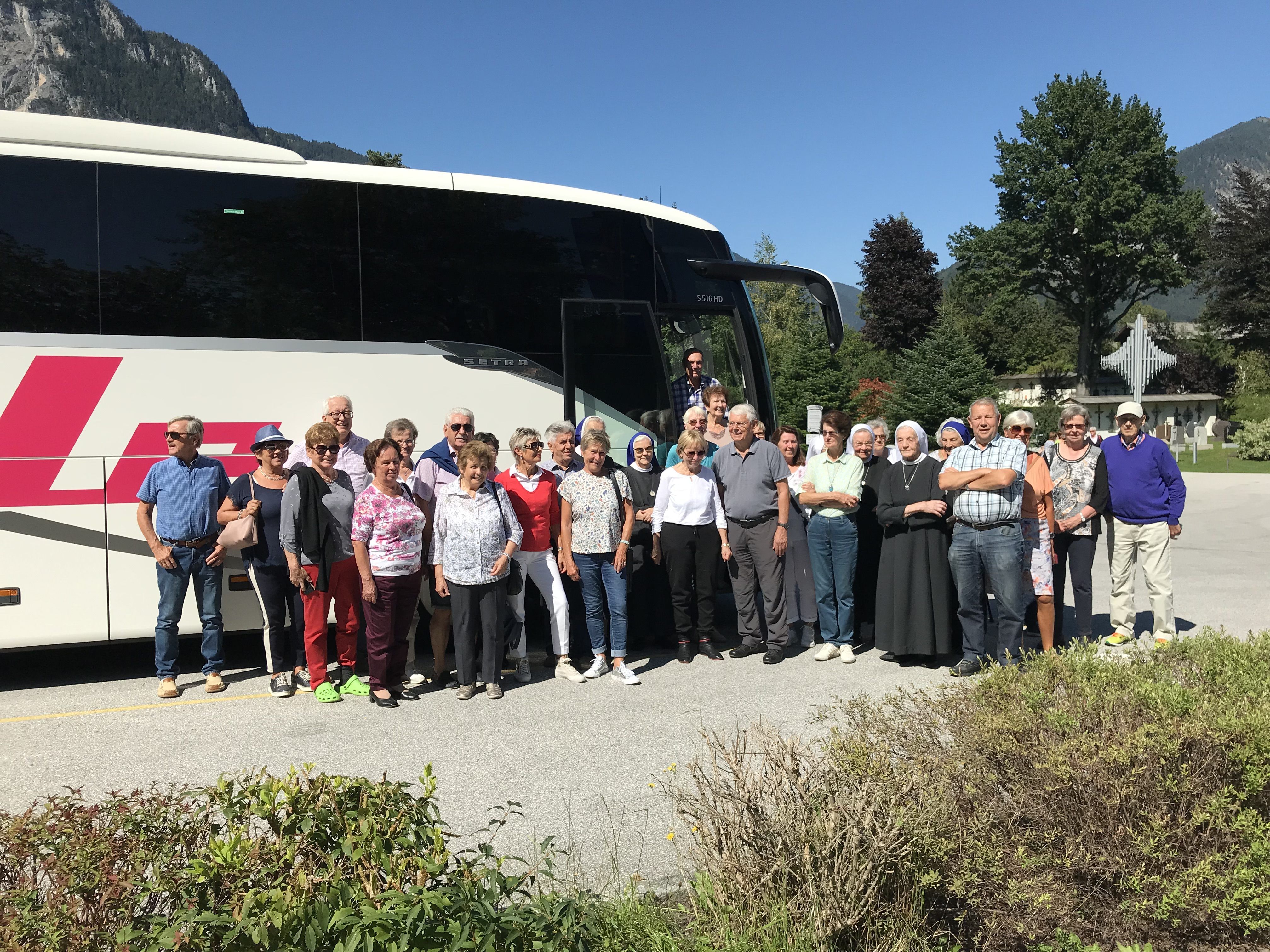Strahlender Sonnenschein versprach diesen Tag wieder einmal zu einem echten Highlight werden zu lassen. Und so wurden Pullover und Jacken im Inneren des Busses rasch abgestreift und die Klimaanlage sorgte auch hinter den Scheiben für angenehme Temperaturen. Dann ging es auch schon los, zunächst zur Autobahn A14, Richtung Landeck und Innsbruck nach Stans zum gemeinsamen Mittagessen im Hotel „Marschall“. Im großen Gastraum waren Tische und Sitzplätze für uns vorbereitet und wir konnten gemütlich Platz nehmen. Köstliches Essen und die kühlen Getränke erfrischten uns.