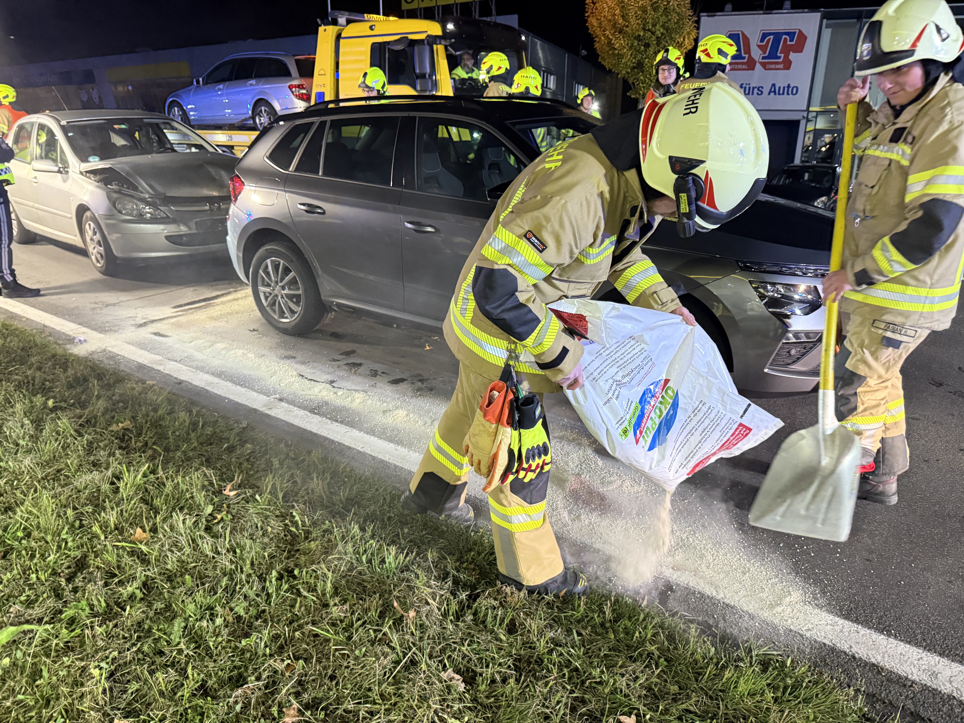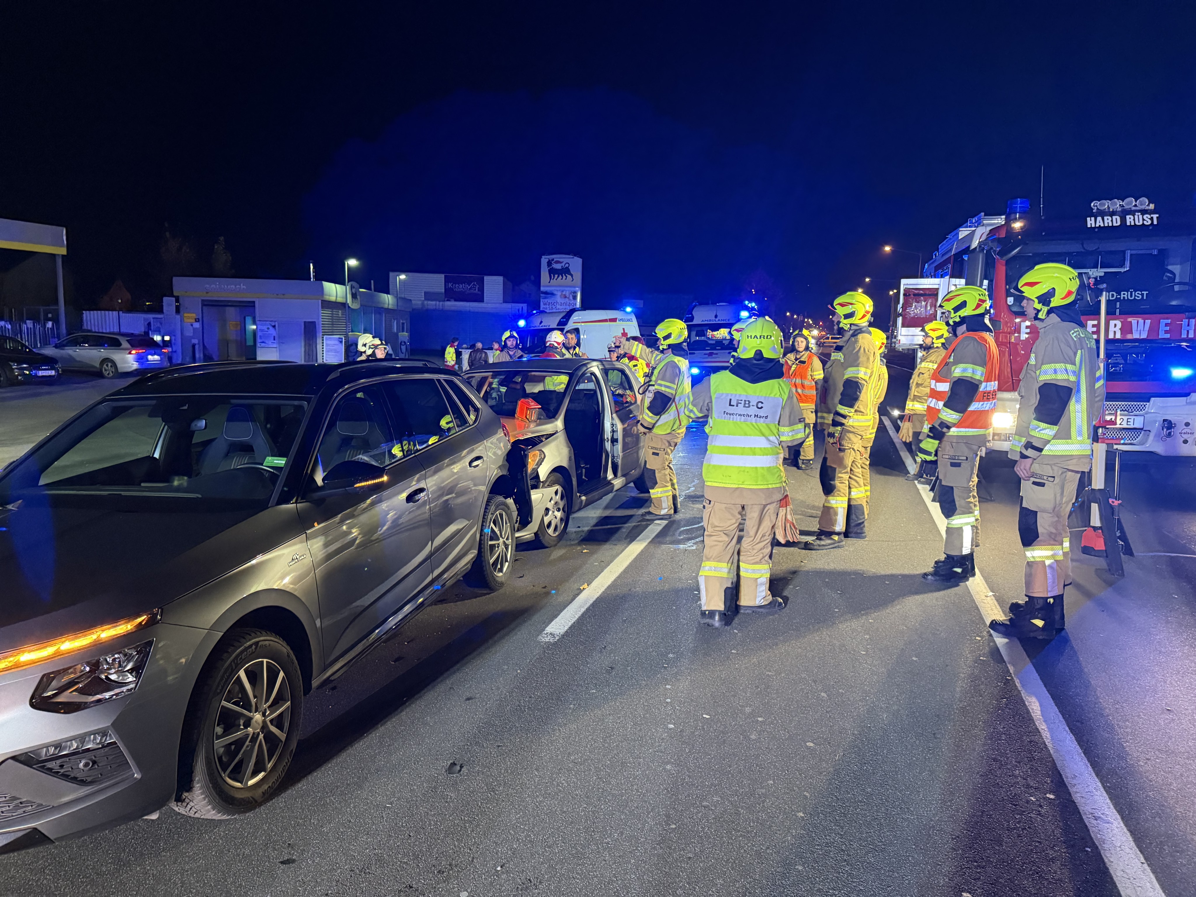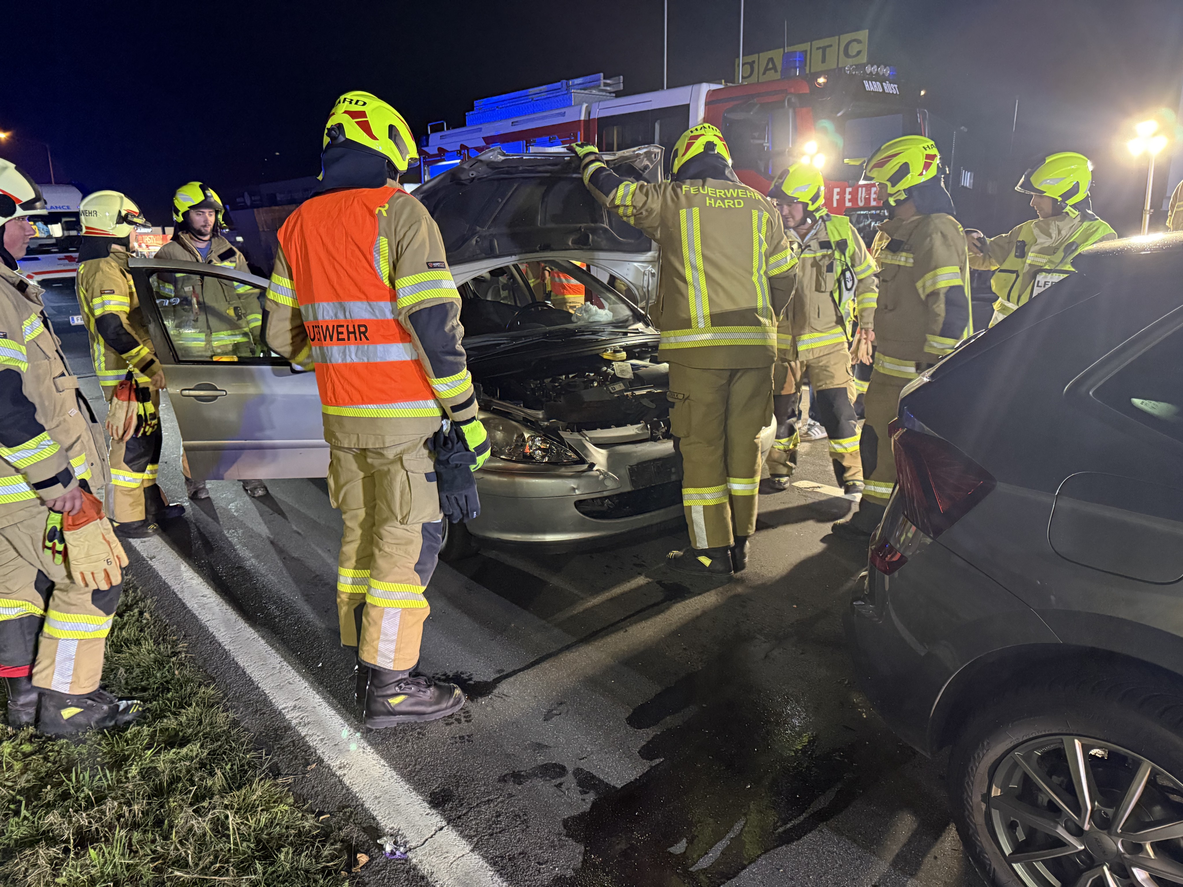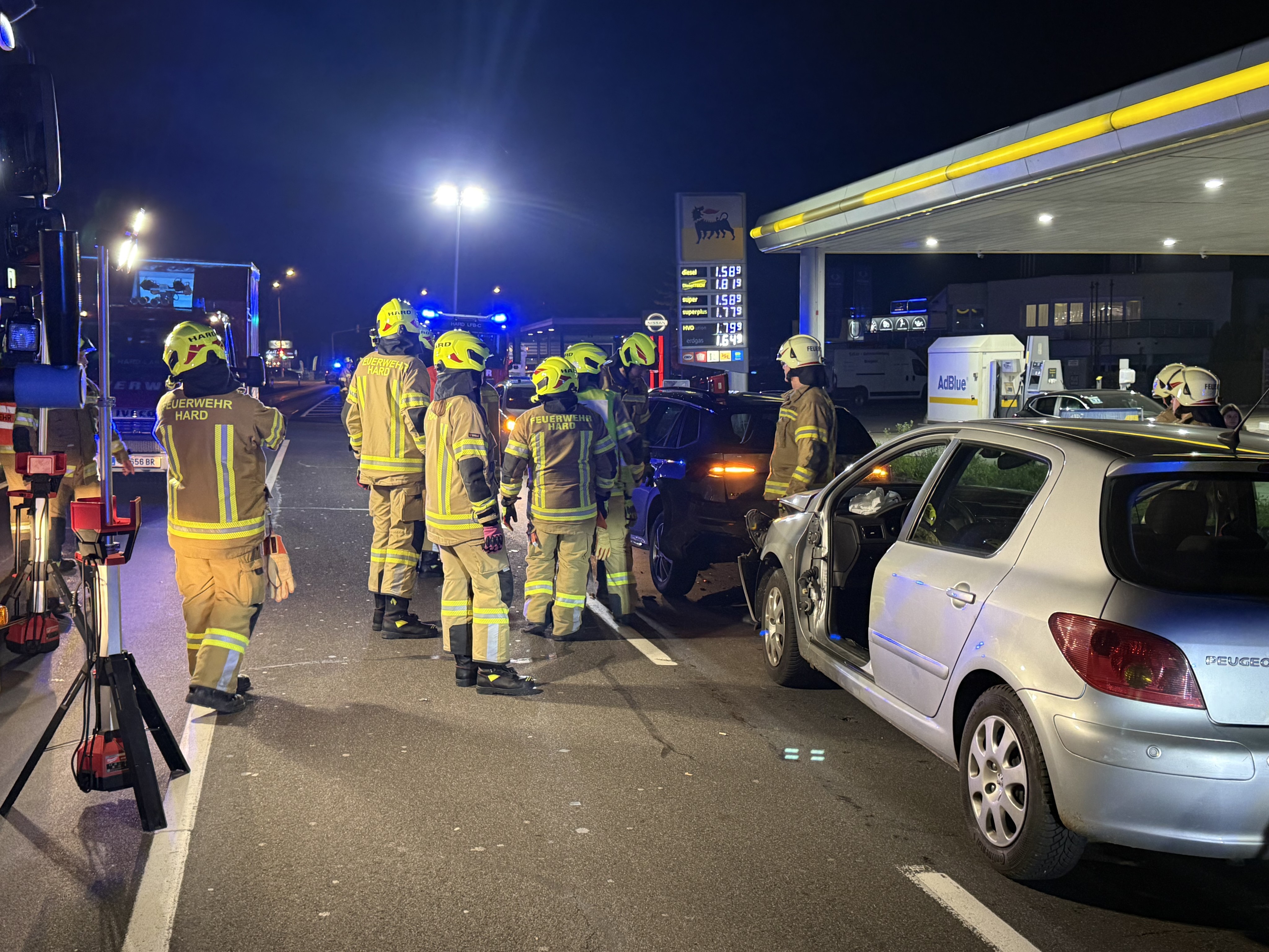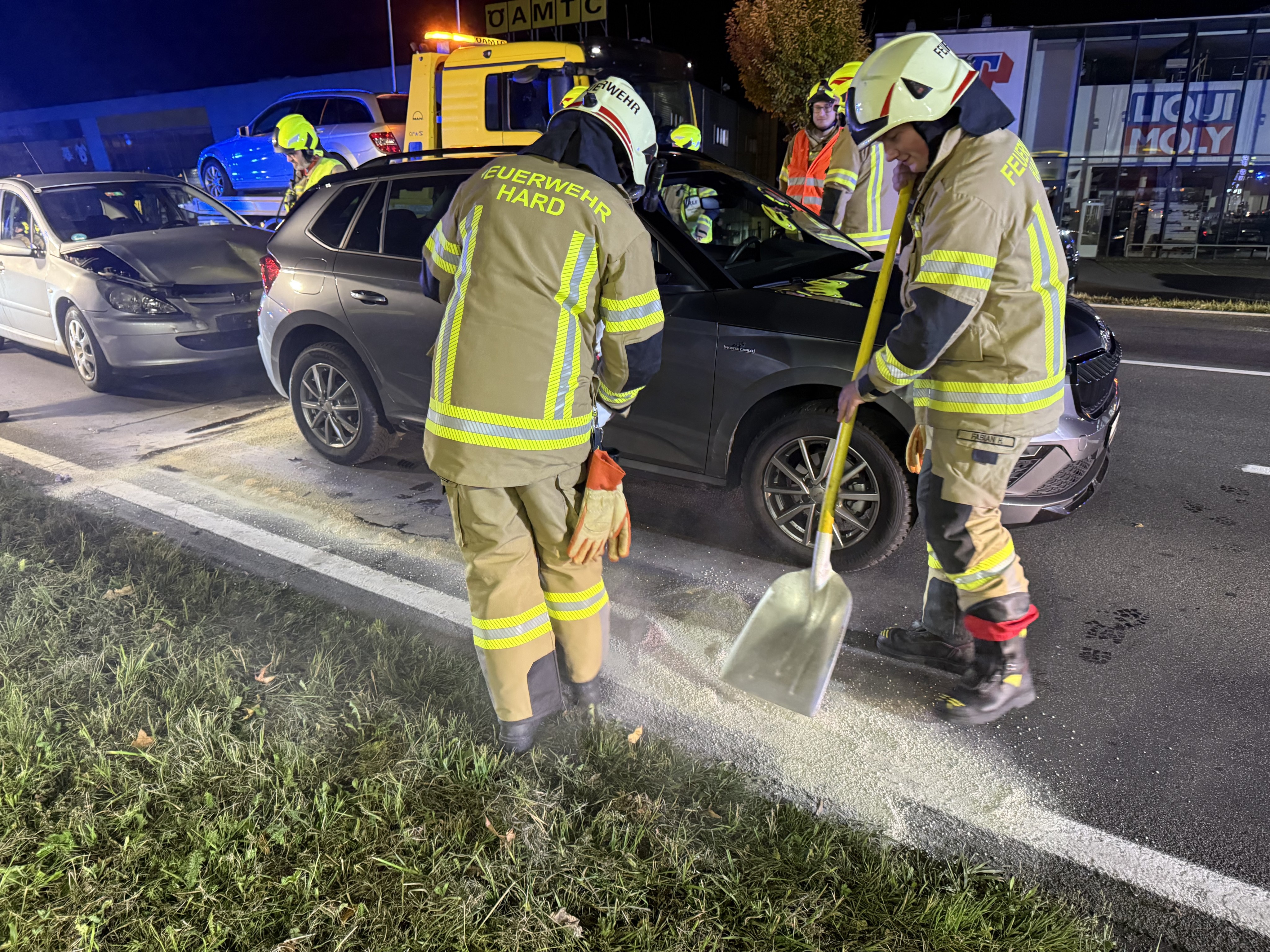 Die Feuerwehr Hard war mit vier Fahrzeugen und 25 Einsatzkräften vor Ort. Sie sicherte die Unfallstelle ab und band auslaufende Betriebsmittel. Während des Einsatzes musste die Rheinstraße in diesem Bereich gesperrt werden. Der Verkehr wurde über das Ortsgebiet von Hard umgeleitet.
