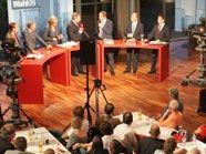 Die Bürger der Alpenstadt nutzten die Chance nur zu gerne, die drei Bürgermeister-Anwärter Arthur Tagwerker (SPÖ), Karin Fritz (Offene Liste Bludenz) und Joachim Weixlbaumer (FPÖ) im direkten Schlagabtausch mit Amtsinhaber und Titelverteidiger Mandi Katzenmayer (ÖVP) zu erleben. Welche Ziele will der sich zur erneuten Wahl stellende Stadtchef künftig verfolgen? Was wollen seine Herausforderer anders machen? Die Moderatoren Dr. Christian Ortner (VN) und Raphaela Stefandl (ORF) legten den Fokus genau auf die brennenden Fragen, die in der Bludenzer Bevölkerung seit langem teils heftig diskutiert werden. So rückte das Thema Aufwertung und Belebung der Innenstadt schnell in den Mittelpunkt. Stichwort: Innenstadt-EKZ Kronenhaus. Bürgermeister Mandi Katzenmayer bekräftigte, dass wir knapp davor stehen, dass endlich ein ganz modernes Einkaufszentrum mitten in der Stadt entstehen wird. Die erforderlichen Kaufverträge mit Spar für die Liegenschaft und Immobilie seien gleichsam unter Dach und Fach. Die Umsetzung dieses enorm wichtigen Projekts kann nun konkret angegangen werden. Dagegen herrschen bei Arthur Tagwerker und Karin Fritz noch Zweifel. Hoffentlich bleibt es diesmal nicht wieder nur bei einer Ankündigung. Überhaupt gelte es die Innenstadtentwicklung mit klar formulierten Zielen endlich umfassend anzugehen. Das fehle seit Jahren. Joachim Weixlbaumer stellte heraus, dass nicht alles nur am Kronenhaus festgemacht werden darf. Er plädierte etwa für eine Ausdehnung der Gratisparkzeiten. Das wiederum ist für Katzenmayer ein falscher Weg. Wir sind mit moderaten Parkgebühren bislang sehr gut gefahren. Außerdem fließen die Einnahmen wieder zurück in die Wirtschaft. Unterstützung kam dabei von Karin Fritz: Die Menschen bringt man nicht wegen Freiparkens in die Stadt, sondern dann, wenn das Angebot stimmt. Sie fordert den Bau einer gut erreichbaren Parkgarage, die auch das Wohnen in der Stadt wieder attraktiver mache. Die Fronten klar abgesteckt wurden unter den vier Spitzenkandidaten dann, als es um die Möglichkeiten für Betriebsansiedelungen ging. Während der Stadtchef auf das gewidmete Tränkeweg-Areal am Osteingang von Bludenz verwies und von aktuell drei ansiedlungswilligen Betrieben sprach, brachte der SPÖ-Spitzenkandidat das Paschg-Gebiet in Brunnenfeld ins Spiel. Tagwerker: Hier muss es einen Dialog zwischen Grundeigner und Stadt geben, der darauf abzielt, in Etappen ein funktionierendes Betriebsgebiet zu schaffen. Unverständnis erntete er da von allen anderen Kandidaten am Podium. Das Gebiet befinde sich in Privatbesitz und die Eigentümer würden nicht daran denken, die Gründe zu verkaufen. Außerdem gilt es diese landwirtschaftlich wertvollen Böden für künftige Generationen zu sichern, betonte Karin Fritz. Die Herausforderungen im Bereich Wirtschaft seien groß, räumte Katzenmayer ein. Dennoch seien die Kommunalsteuereinnahmen in Bludenz konstant, das zeuge von Qualität und Sicherheit der Arbeitsplätze.