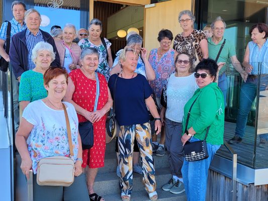 Den ersten Halt machten wir bei der Fa. Bentele in Alberschwende. Da gab es viele gute Sachen zum Kaufen: Käse, Schnaps, Salami, Honig und noch vieles mehr. Anschließend ging es nach Hittisau zum Goldenen Adler. Dort bekamen wir Kässpätzle mit Kartoffelsalat zum Mittagessen. Nach einer Stunde Freizeit fuhren wir weiter nach Hohenems zur Konditorei Lorenz. Dort gönnten sich etliche Mitfahrer ein leckeres, kühlendes Eis. Andere probierten die wunderbaren Torten. Um ca. 18 Uhr waren wir wieder in Ludesch. Wir danken der Firma Haueis für die hervorragende Organisation und dem Chauffeur Christian für die sichere Fahrt. Es war ein schöner Tag.
