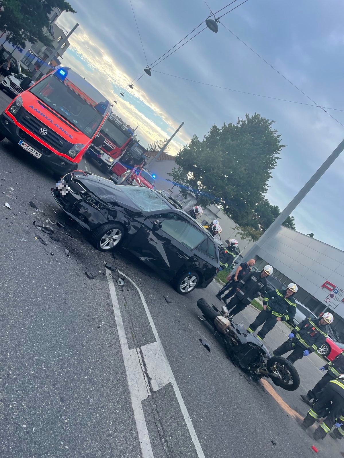 • Auto mit Motorradlenker in Wien-Floridsdorf kollidiert