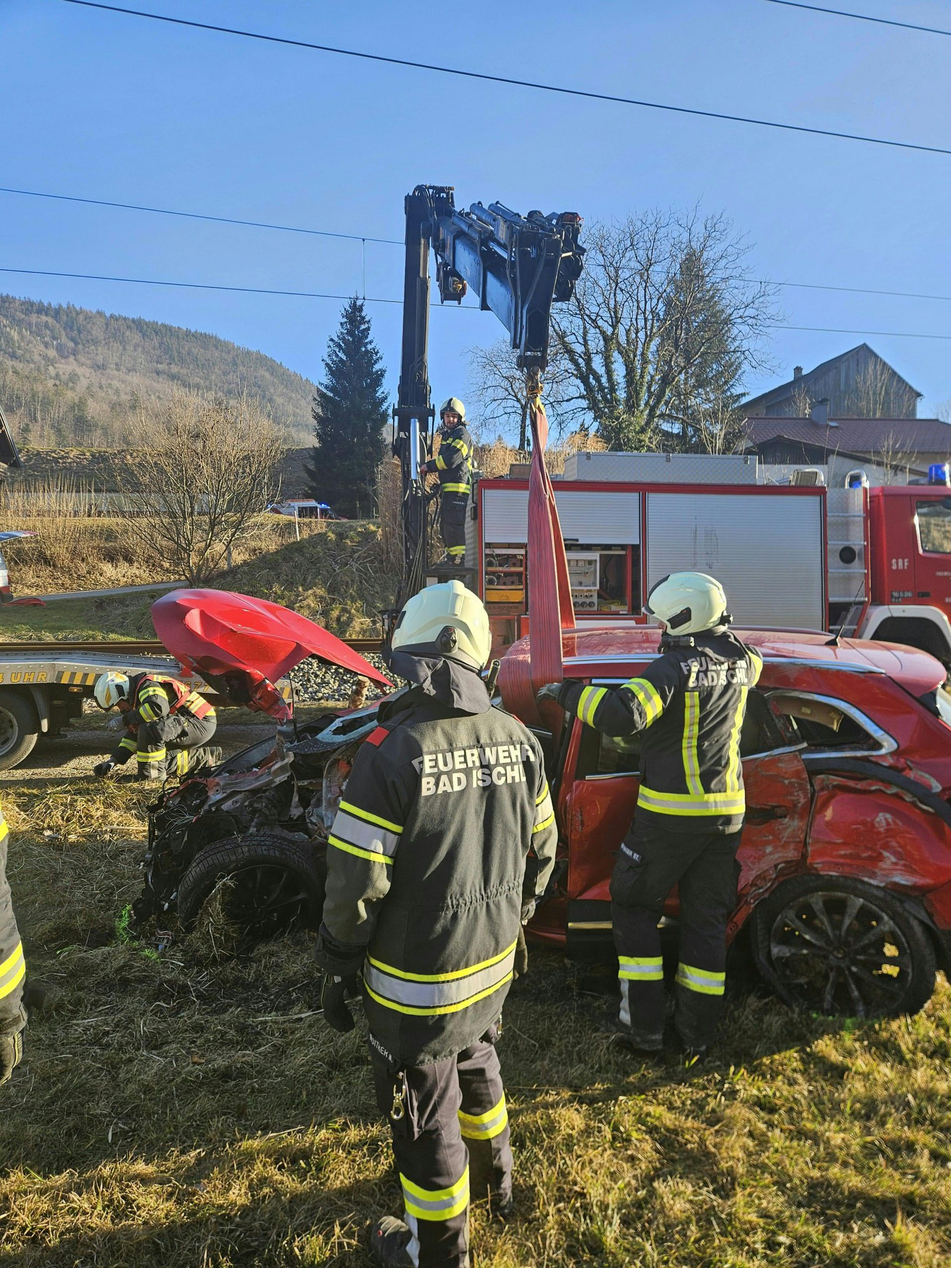 Der Lenker konnte sein Fahrzeug selbstständig verlassen und stand beim Eintreffen der ersten Einsatzkräfte geschockt, aber unverletzt neben dem Pkw, berichtete die Freiwillige Feuerwehr Bad Ischl. Die Feuerwehr barg das völlig zerstörte Autowrack und säuberte die Unfallstelle von herumliegenden Fahrzeugteilen. Anschließend brachten Feuerwehrleute die Zuggäste zu einem Ersatzbus.