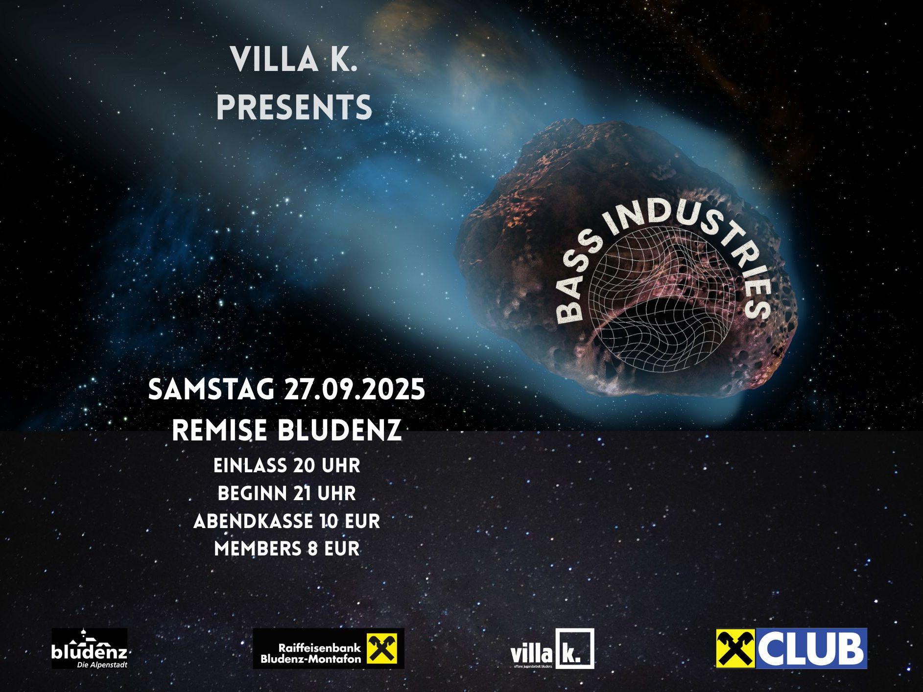 Am Samstag, den 27. September, wird die Remise zum pulsierenden Zentrum elektronischer Klänge: BassIndustries kommt zu uns! Das DJ-Kollektiv bringt eine kraftvolle Mischung aus Techno, House und Drum & Bass auf die Tanzfläche.