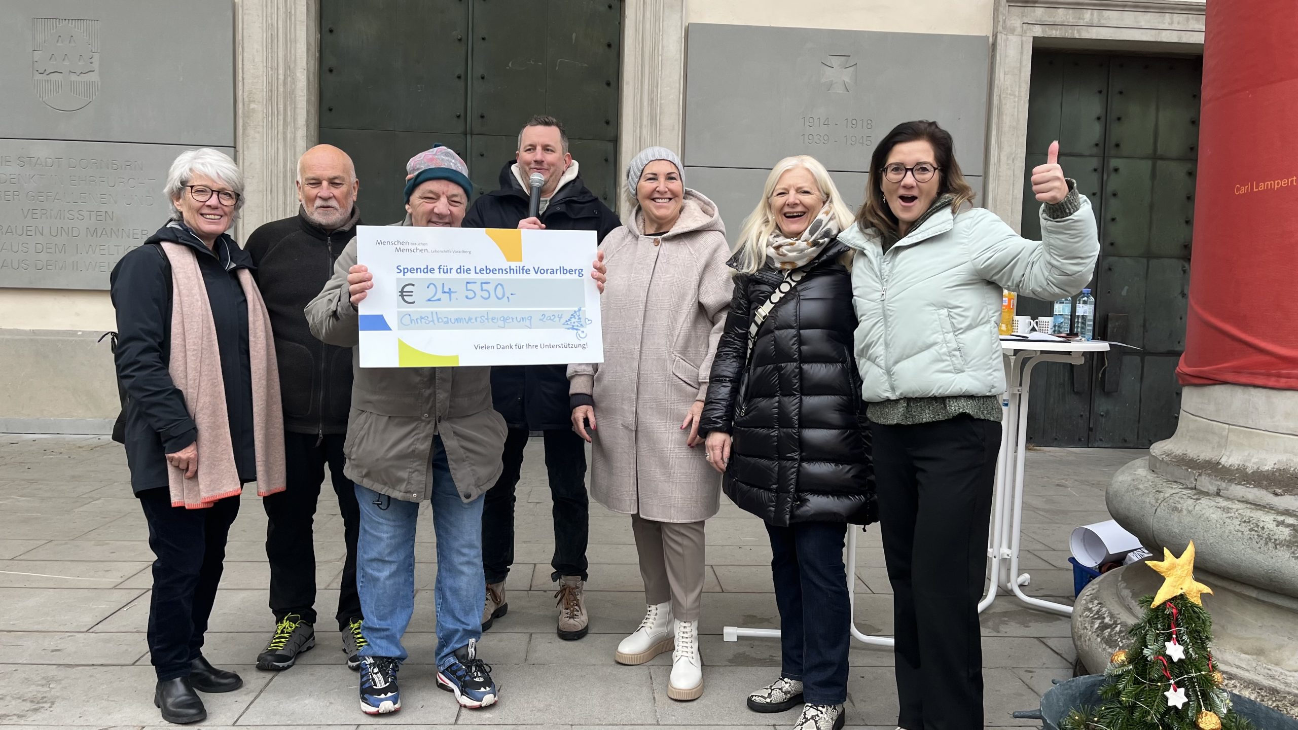 Die ersteigerten Bäume verschönern nun nicht nur soziale Einrichtungen wie etwa das Sozialzentrum Egg oder die Palliativstation Hohenems, sondern auch das ein oder andere private Wohnzimmer. Die Christbaumversteigerung begeistert inzwischen weit über die Grenzen Vorarlbergs hinaus: Nachdem die Familie Fischer aus Stuttgart die Veranstaltung im letzten Jahr zum ersten Mal besuchte und davon so begeistert war, entschloss sie sich, in diesem Jahr mit einer großzügigen Spende von 2.000 Euro beizutragen. Unterstützt wurde die Aktion zudem durch Spenden von der Walser Gruppe, dem Autohaus Ellensohn und der Raiffeisenbank Wolfurt.