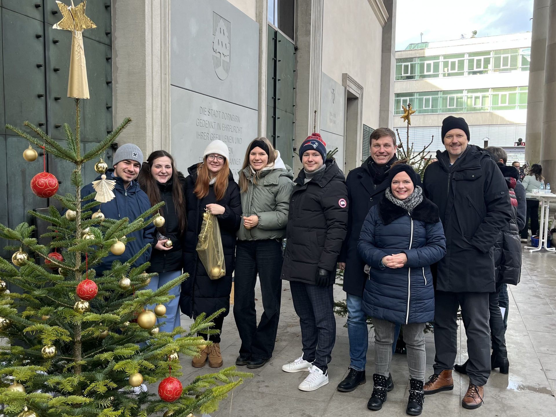 Als Baumschmücker im Einsatz waren unter anderem Anna-Lena Hollfelder (Hollfelder Juwelier und Optik), Eduard Fischer (Wirtschaftskammer Vorarlberg), Florian Isele mit Lehrlingen (Raiffeisenbank Dornbirn), Ambros Mayer (inside Dornbirn), Nicole Schedler (Messepark), Richard Karlinger (Hypo Vorarlberg), Guntram Mattle (Steinblock), Tobias Forer-Pernthaler (F.M.Hämmerle), Daniel Flatz (Kiwanis Club), Matthias Moosbrugger mit Tochter (Rotary Club) und Bosse Danielsen (Mohrenbräu) im Einsatz. Auch die Lebenshilfe Vorarlberg, vertreten durch Klient*innen, Mitarbeitende sowie Geschäftsführerin Michaela Wagner-Braito und Vizepräsidentin Adriane Feurstein, gestaltete einen Baum.