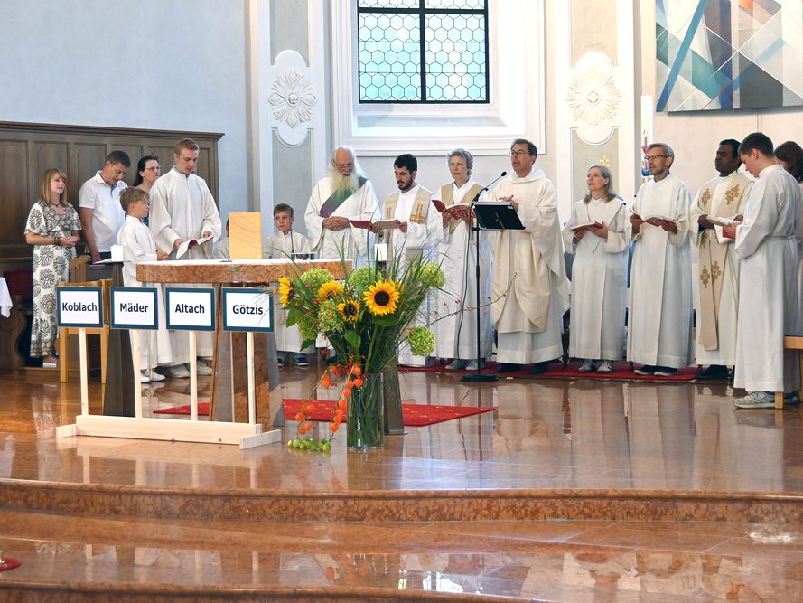 Schon der Einzug zum Orgelspiel war ein Sinnbild der Zusammenarbeit: Vertreter der Pfarren Koblach, Götzis, Mäder und Altach zogen von vier Eingängen ein und versammelten sich vor dem Altar. Pfarrer Rainer Büchel, Hauptzelebrant und Moderator des neuen Pfarrverbandes „Katholische Kirche am Kumma“, betonte: „Vom Ich zum Wir – und umgekehrt.“ Auch die Bürgermeister aller vier Gemeinden waren anwesend, was er als gutes Zeichen für das Zusammenspiel von Politik und Kirche wertete.