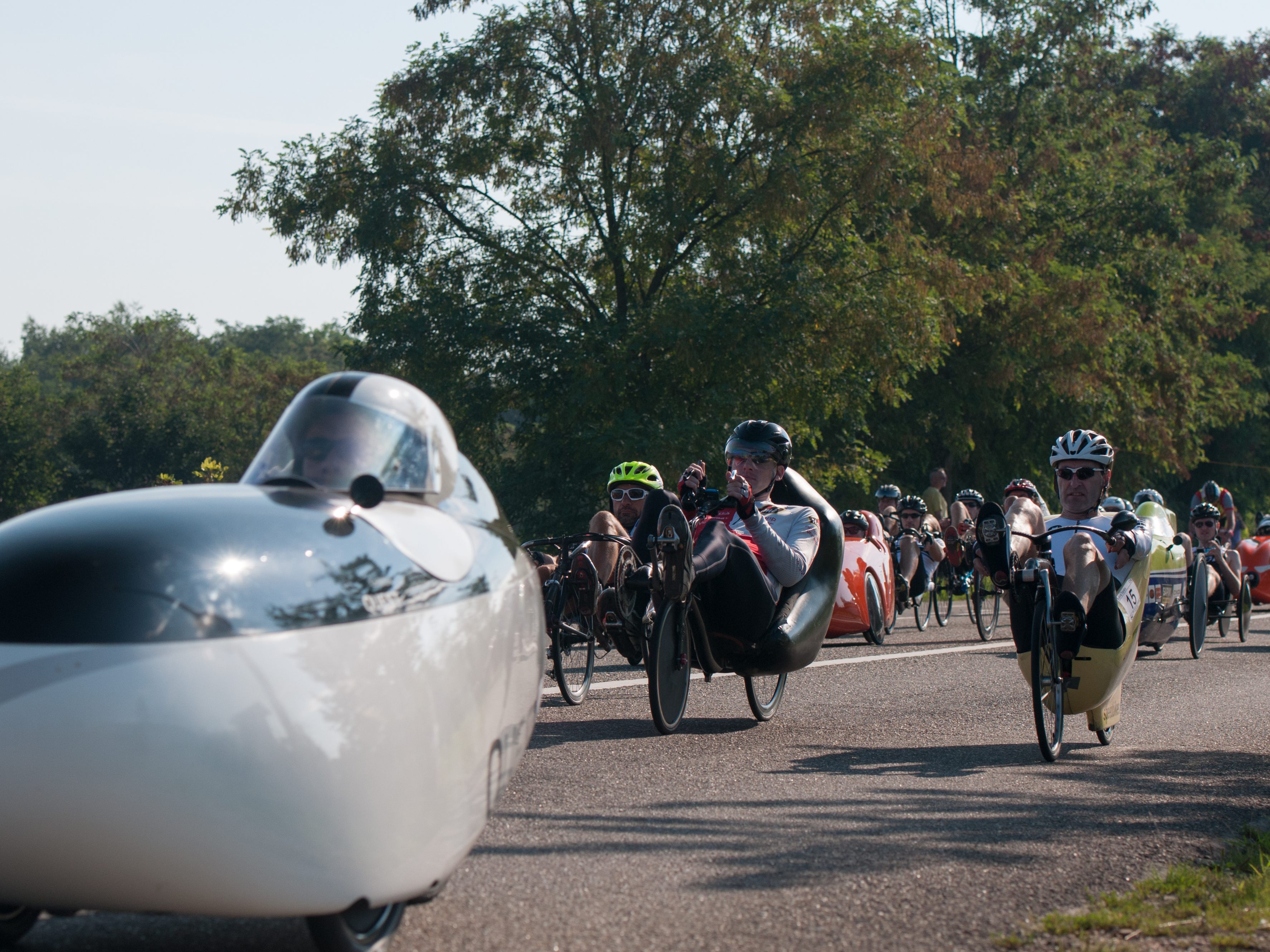 Alles was liegt, darf teilnehmen. Darunter sind zwei- oder dreirädrige Liegeräder zu sehen, die teils verschalt sind oder ohne Verschalung an den Start gehen. Vollverkleidete Liegeräder sind Velomobile. Werden die vorderen zwei Reifen beim Velomobil mit sogenannten „Hosen“ abgedeckt, ist die Aerodynamik noch besser, aber auch hier gilt: das entscheiden die Fahrenden selbst. Es gibt nur eine Richtlinie: es gilt lediglich die reine Muskelkraft. Keines der Fahrzeuge ist mit Motor ausgestattet.