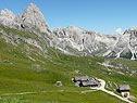 2. Tag: Geisslergruppe und Fermedatürme: Wir sehen uns die Langkofelgruppe erst einmal von der gegenüberliegenden Talseite an und begeben uns in das Gebiet der Geislerspitzen mit dem Ziel der Seceda, einem Kleinod der Dolomiten. Nach der Talfahrt vom Hotel mit dem Sessellift und kurzer Fahrt mit dem Bus nach Wolkenstein starten wir dort unsere Wanderung auf 1550 m, es geht über die Alpe Juac zur Regensburger Hütte (2037 m). Nach einer Rast steigen wir
