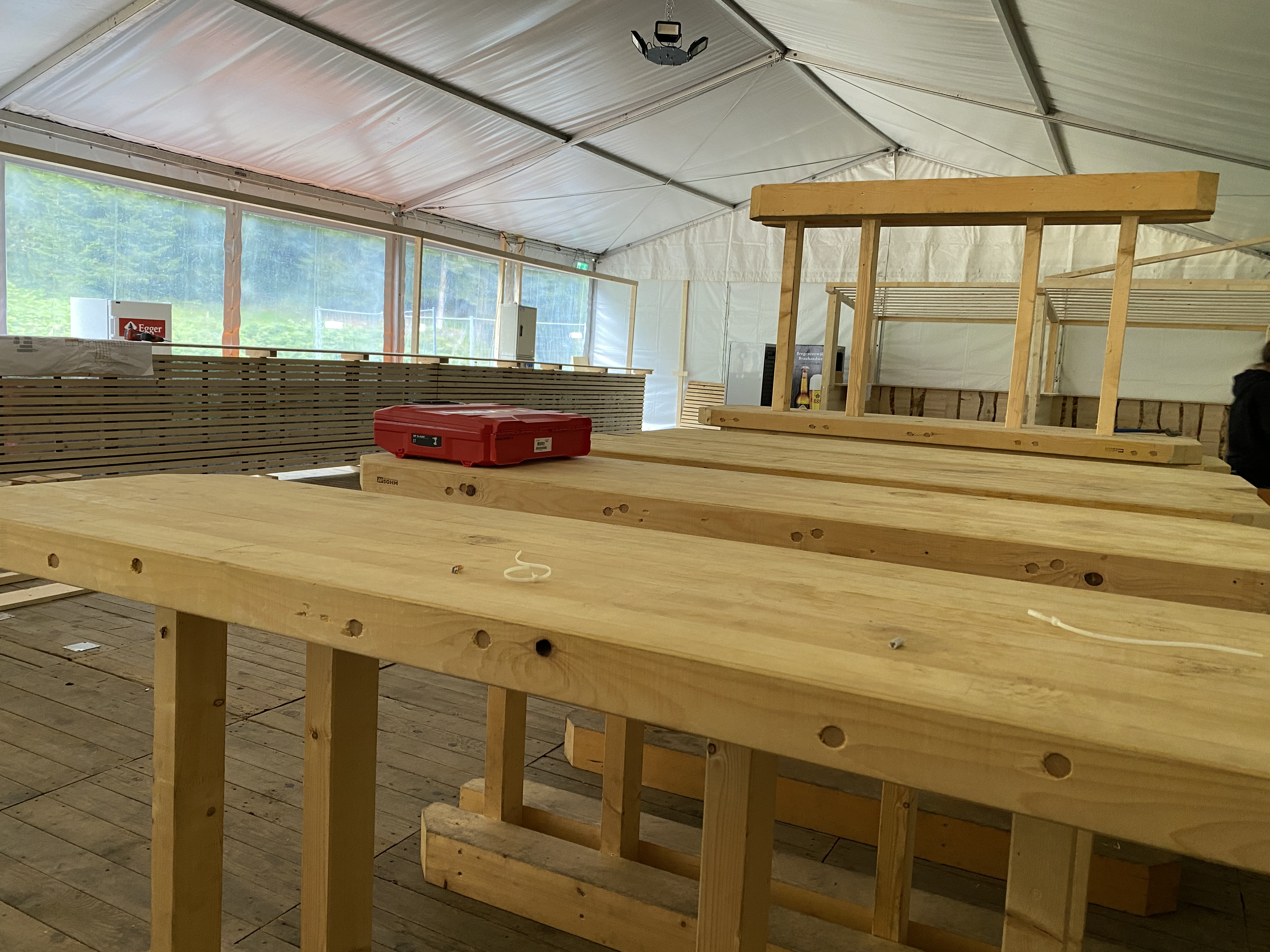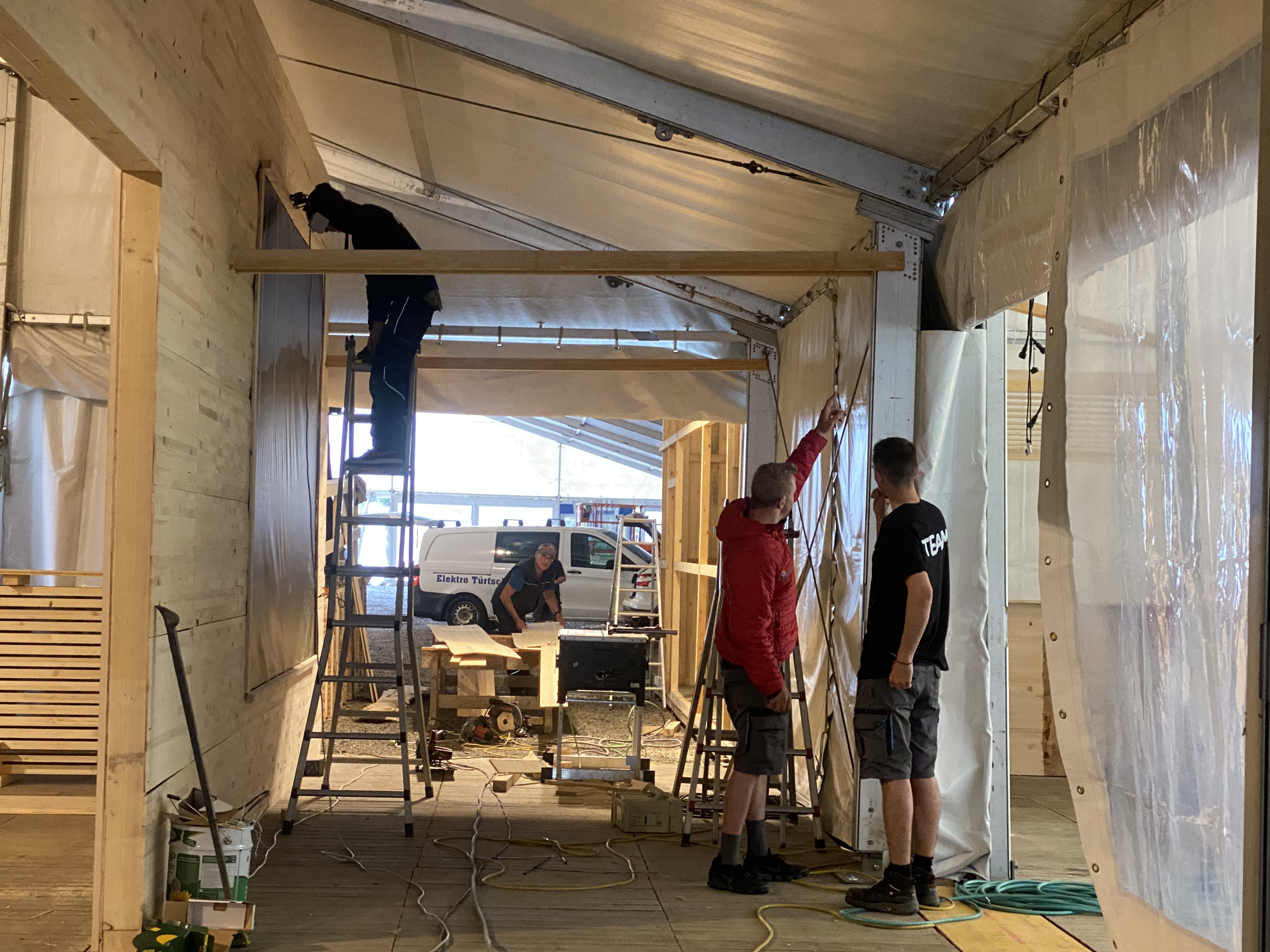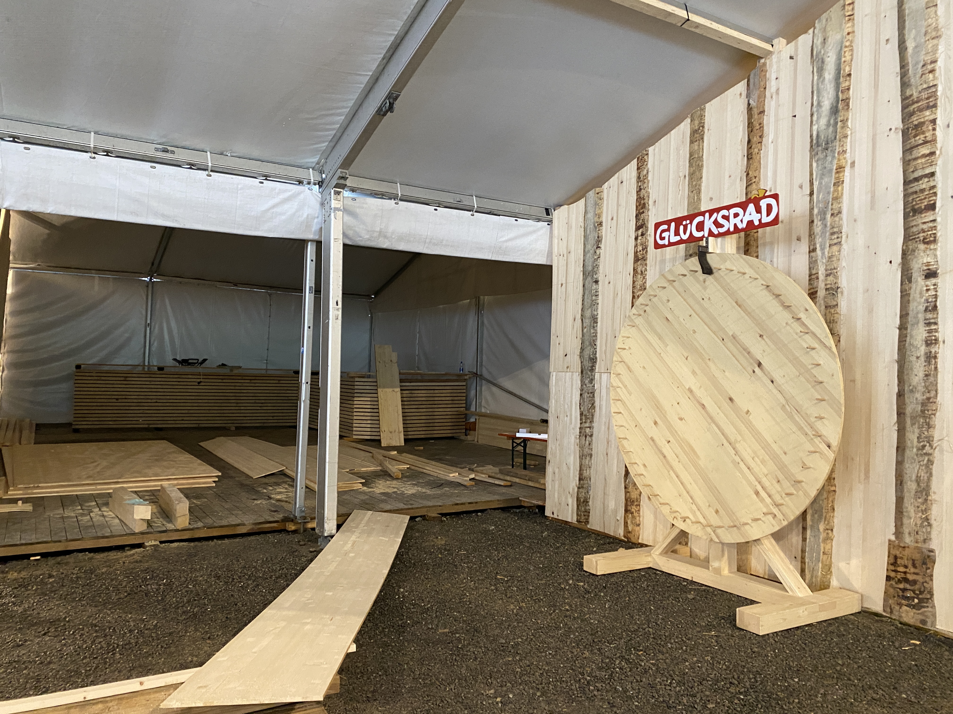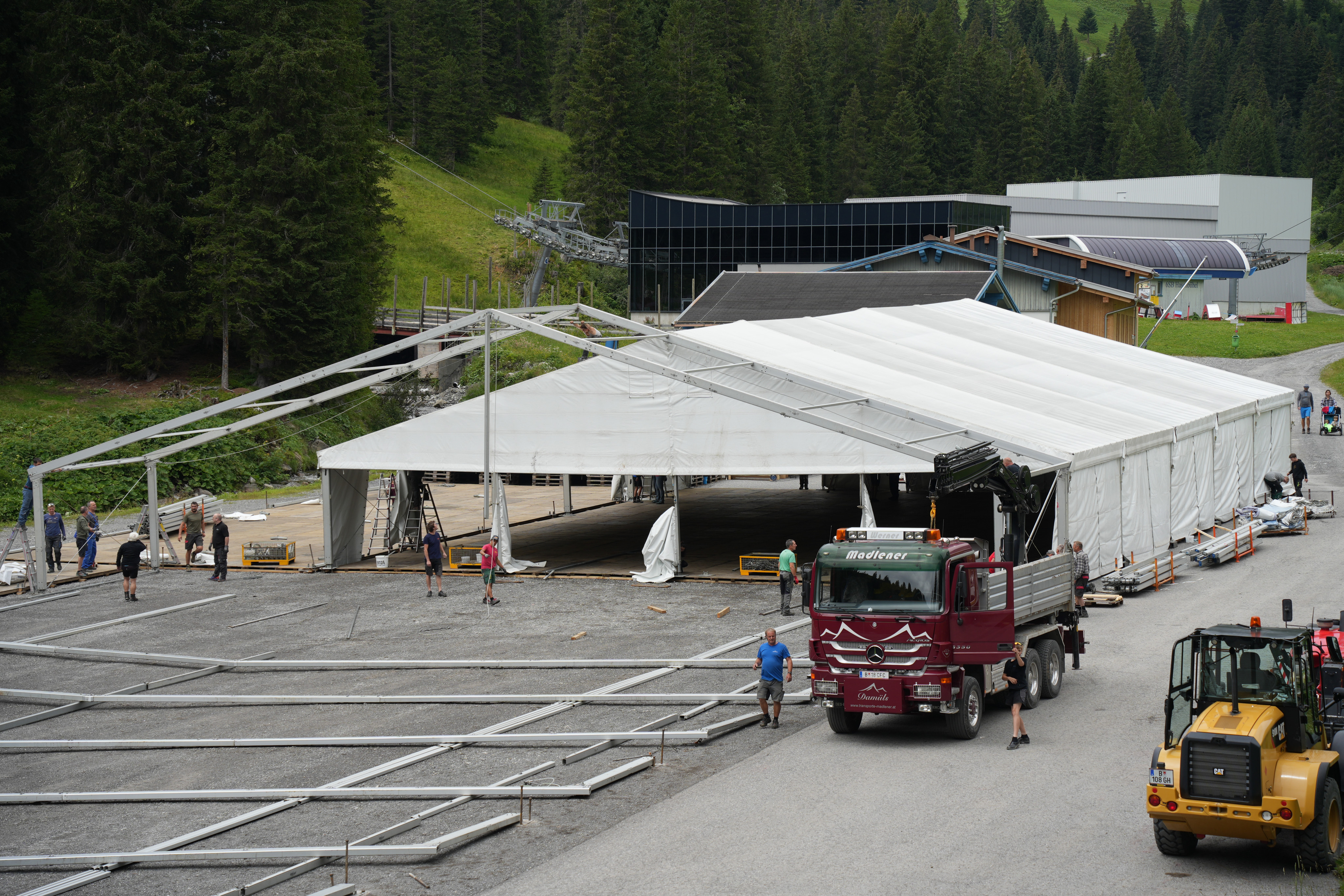 VOL.AT hat am Festplatz beim Parkplatz der Sonnegg-Bahn vorbeigeschaut. Man sei sozusagen in den "Endzügen" der Vorbereitung, meint Obmann Manfred Moosbrugger. "Wir sind jetzt schon seit fünf Tagen dran, am Aufstellen", erklärt er. "Es ist eigentlich die ganze Dorfbevölkerung involviert", verdeutlicht Vize-Obmann David Abel.