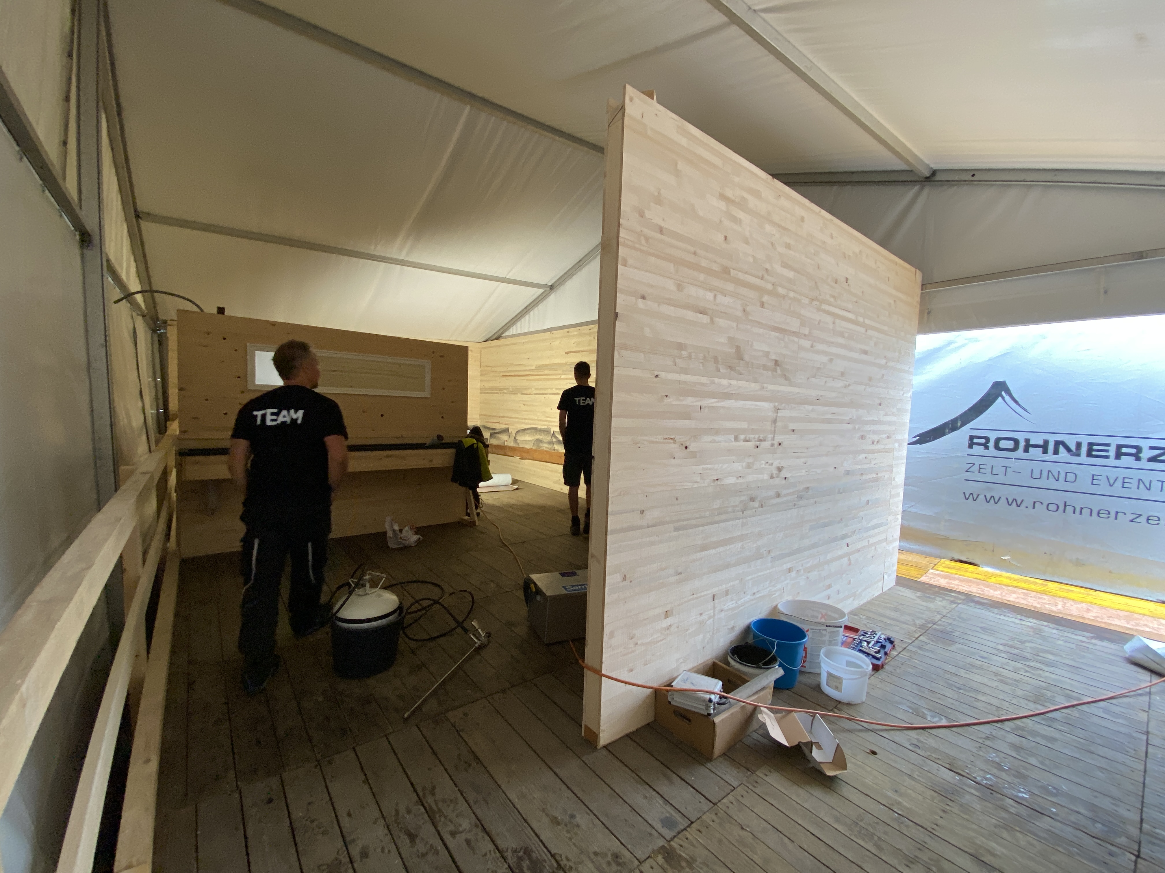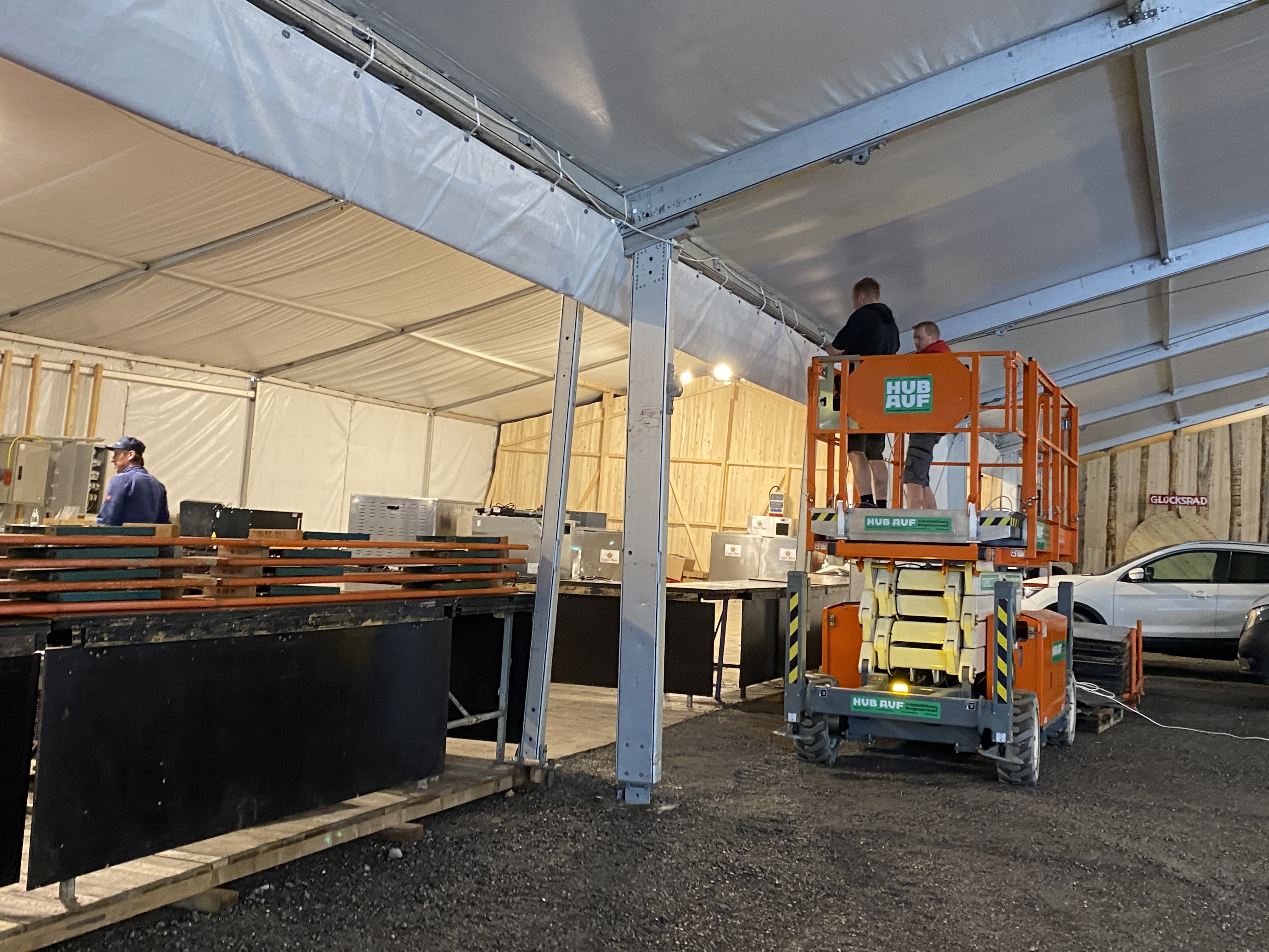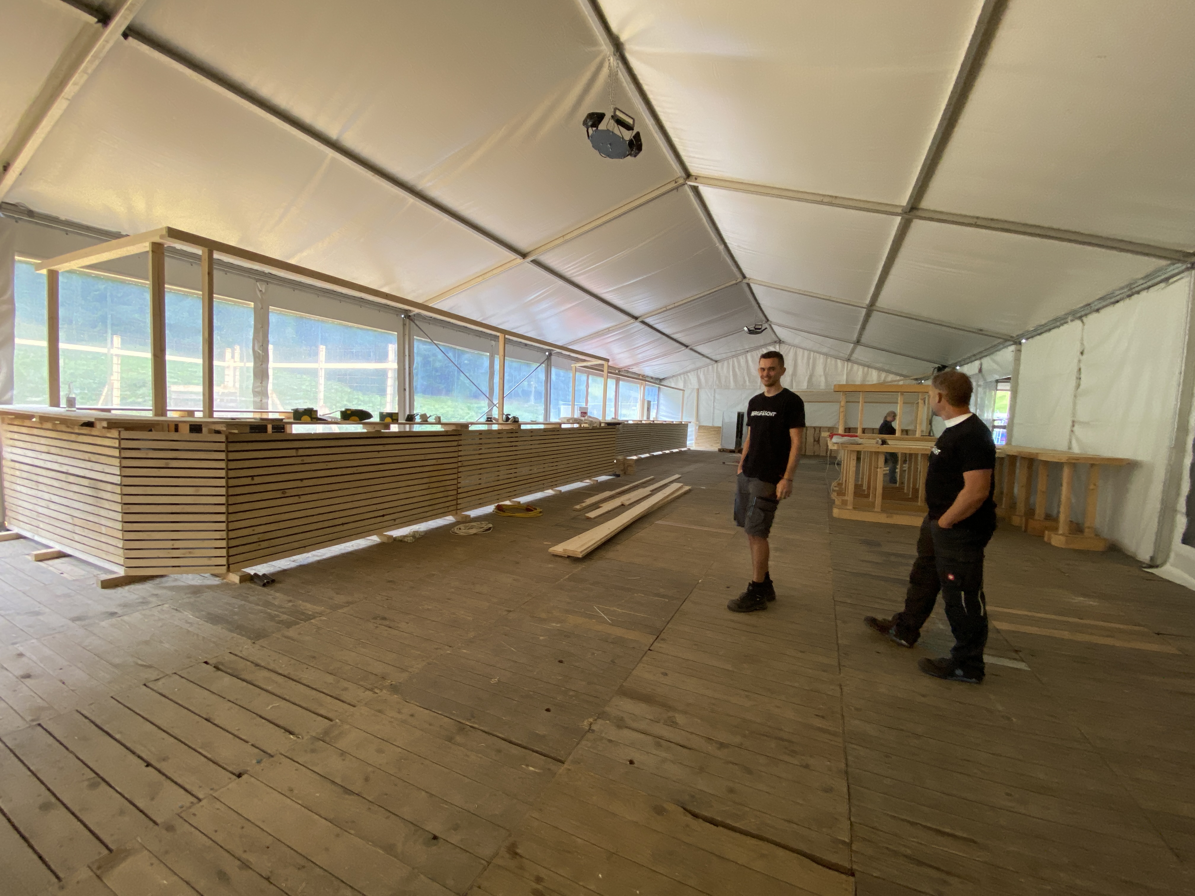 Seit letztem Donnerstag laufen die Arbeiten. Gestartet wurde mit dem Aufbau der vier Zelte. Jetzt folgen nach und nach Elektroinstallationen, Wasseranschlüsse, sowie die Einrichtung von Bar und Weinlaube. Die große Bühne steht schon. "Es gibt einfach rund um viel zu tun", meint Abel im VOL.AT-Gespräch. Das Bier darf laut Obmann Moosbrugger beim Musikfest nicht fehlen. Bei den Speisen habe man sich allerdings bewusst gegen typische Fest-Gerichte entschlossen. Die Fest-Besucher dürfen sich auf eine Weinlaube mit Sommelier, eine große Bar und eine Wahnsinns-Bühne freuen. "Es wird einfach gewaltig", ist sich der Obmann sicher.