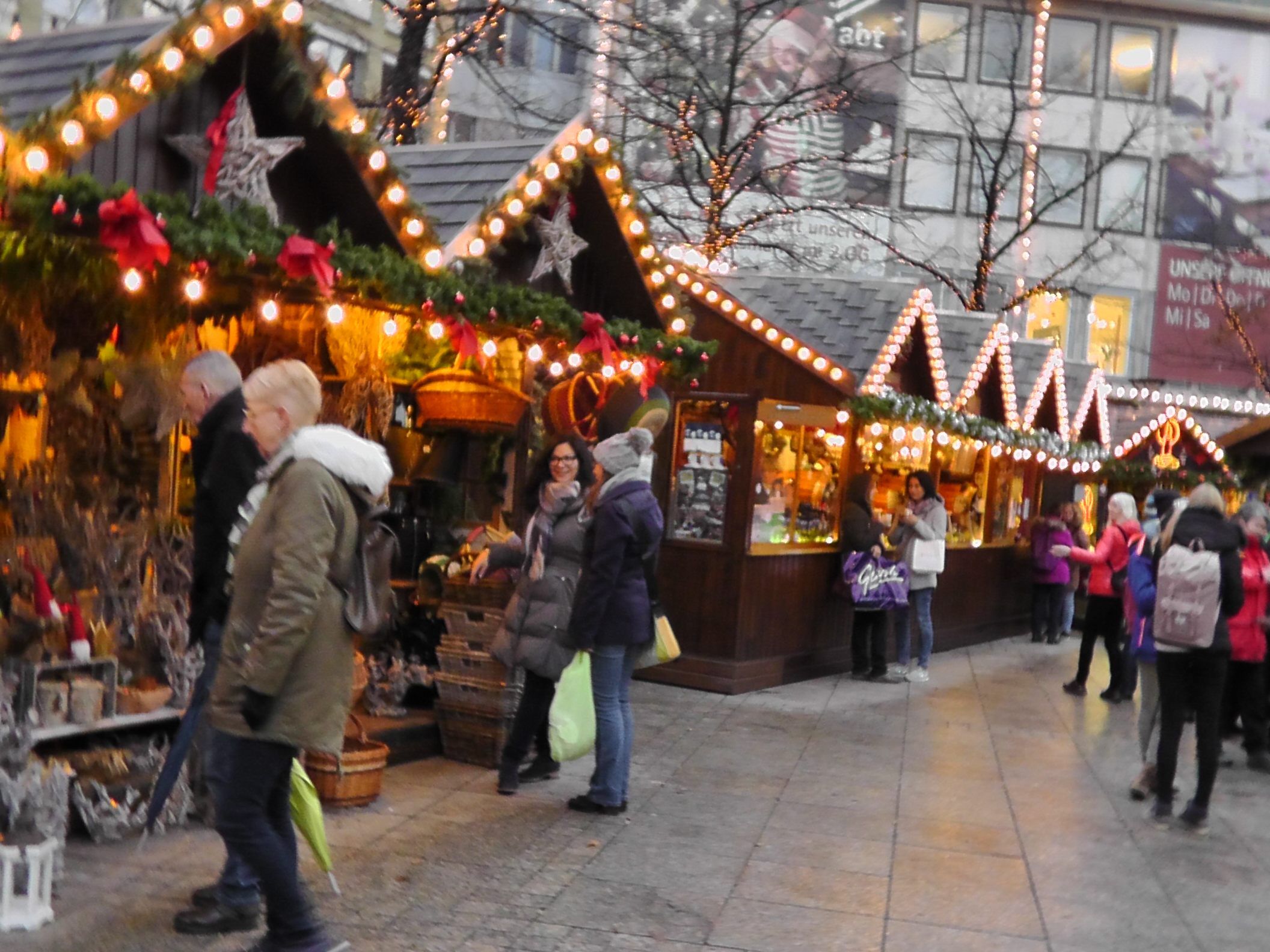 Das Wetter passte und ohne Regenschirm konnten wir an den Ständen entlang flanieren. Alles war geboten, was das Herz begehrte – Süßes und Deftiges, natürlich der obligate Glühwein oder Glühmost, dazu Christbaumschmuck und weihnachtliches Kunsthandwerk.