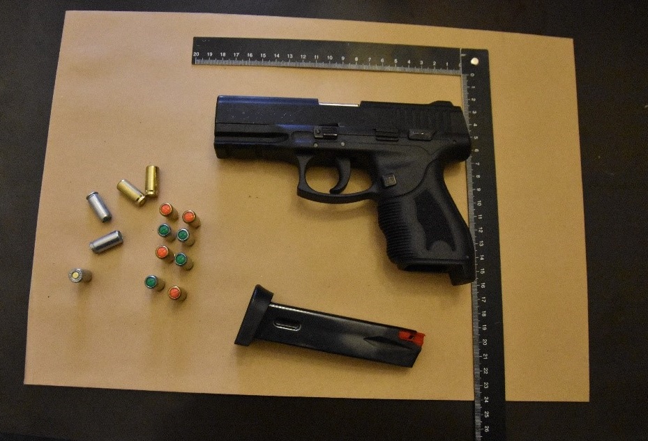 Ein 42-Jähriger sagte, der Bewaffnete habe ihn bedroht. Der 49-Jährige wurde in einem Innenhof in der Nähe von WEGA-Beamten festgenommen. Es stellte sich heraus, dass die Pistole eine CO2-Waffe war. Sie wurde dem Betreffenden samt Magazin und Patronen ebenso abgenommen wie ein CO2-Maschinengewehr mit drei Magazinen, das er in einem Rucksack dabei hatte. Außerdem stellte sich heraus, dass der Mann schwer betrunken war. Ein Alkotest ergab 2,8 Promille.