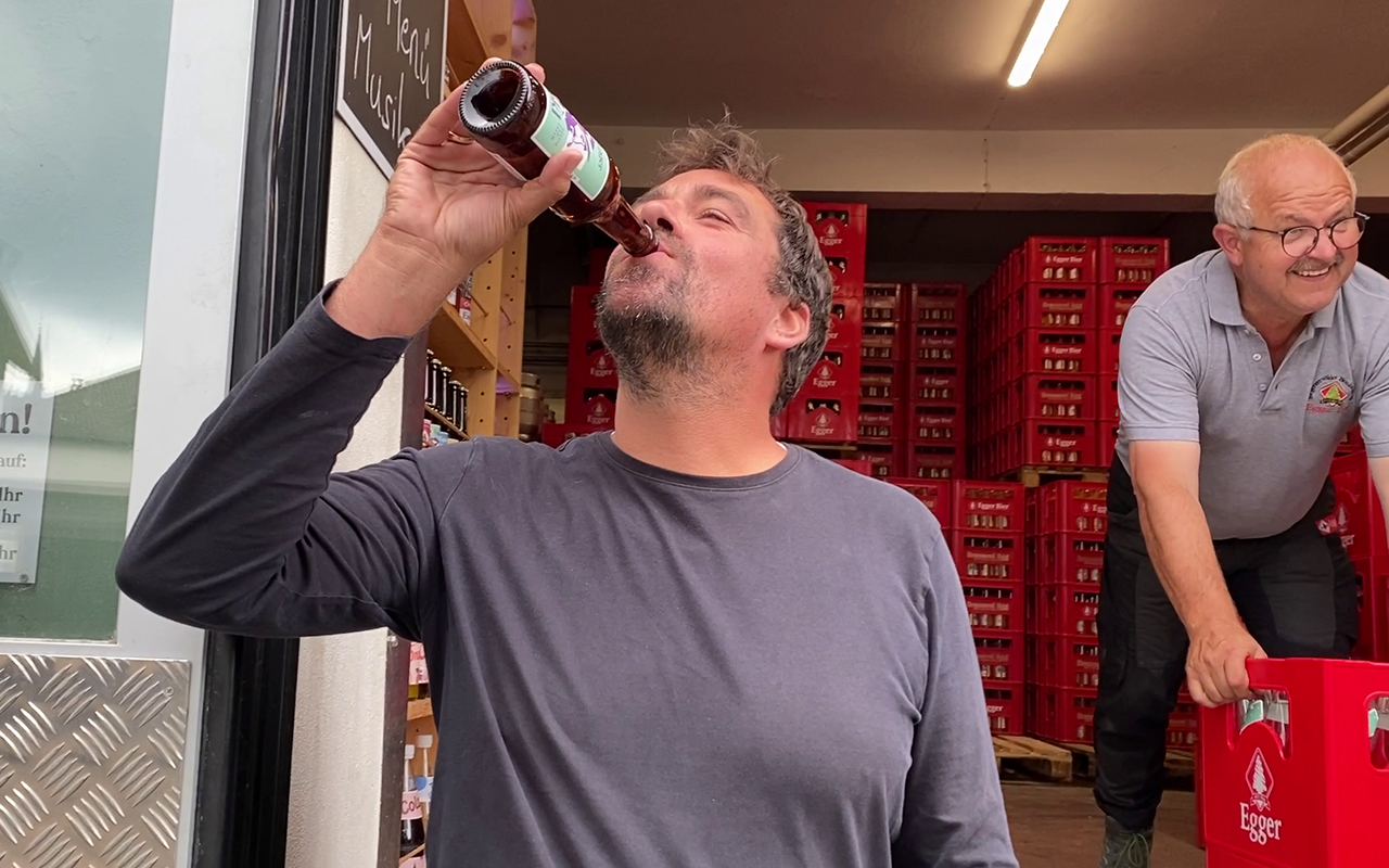 VOL.AT traf Geschäftsführer Lukas Dorner am Freitag vorab an der Rampe und sprach mit ihm über das neue Bier. Für die großen Feste im Bregenzerwald habe man immer schon ein helles Festbier gebraut, erklärt er. "Ein bisschen schwächer eingebraut und ein bisschen weniger gehopft. Also ein klassisches Feierabendbier, ein Sommerbier", gibt Dorner zu verstehen. "Das ist die letzten Jahre so gut angekommen, dass wir gesagt, haben eigentlich müssten wir das auch mal abfüllen."