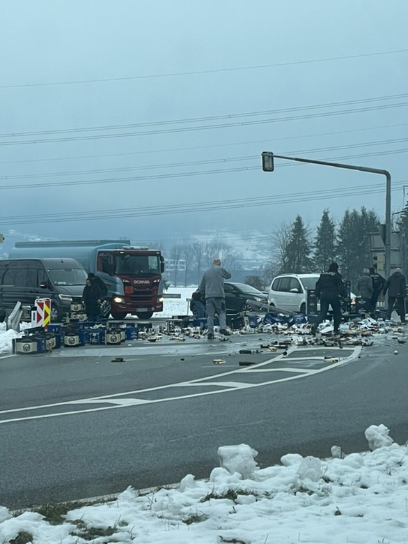 Bierunfall in Dornbirn: Lkw verliert Ladung