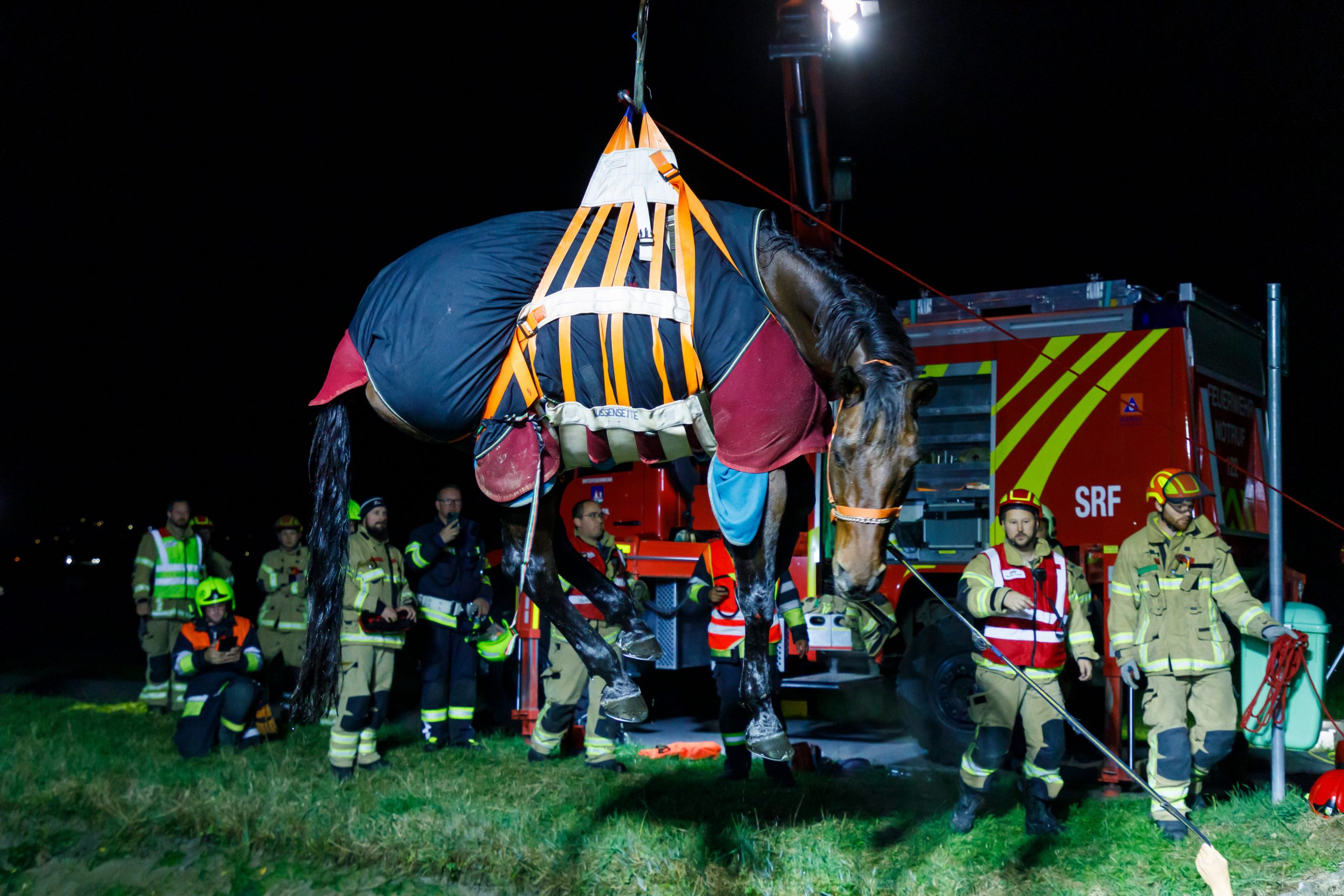 Um das Pferd zu bergen, wurde die Tierbergungsspezialeinheit aus Rankweil zur Unterstützung gerufen. In Zusammenarbeit mit der Feuerwehr wurde eine effektive Strategie entwickelt, um das Tier aus dem Wasser zu ziehen.