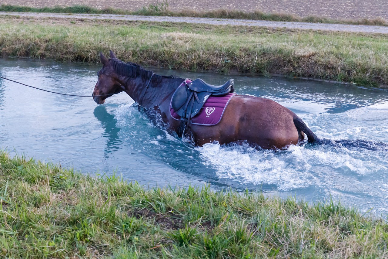 Die junge Reiterin stieg ab, woraufhin das Pferd in Richtung Stall davon galoppierte und dabei in einen nahegelegenen Bach stürzte. Trotz mehrerer Versuche konnte das Pferd nicht aus eigener Kraft aus dem Wasser kommen, und die Situation erforderte eine professionelle Rettung.