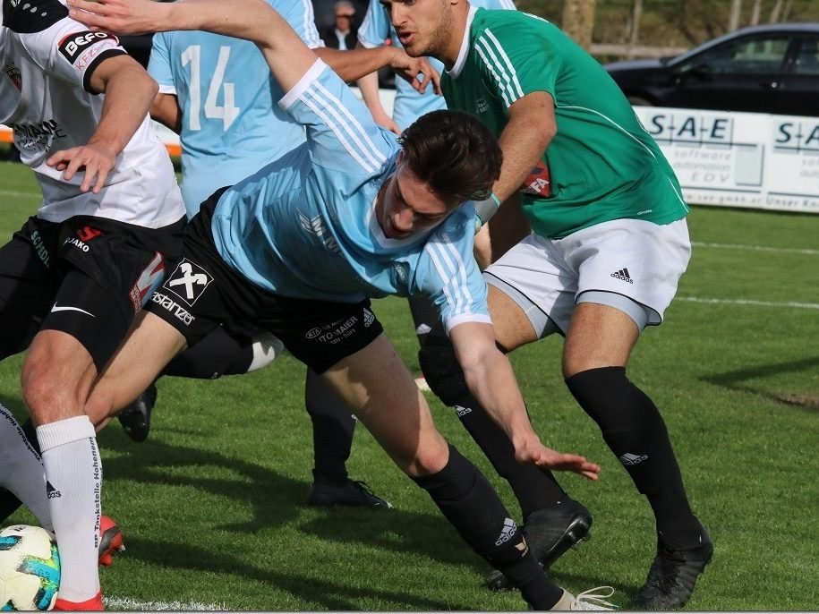 In der 44. Minute geht FC Bizau in Führung. Das Tor zum 1:2 erzielt Fabian Flatz.
