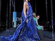Den absoluten Spitzenplatz erzielte in der Disziplin ‘blau’ jedoch Designerin Diane von Fürstenberg. Das tief ausgeschnittene, ärmellose Kleid in königsblau ist aus schimmernder Seide gefertigt und umspielt den Körper bei jeder Bewegung auf einzigartige Weise.