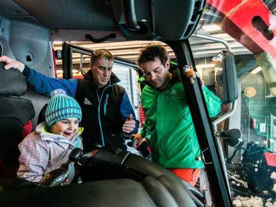 Zuerst erfährst du in einer kurzen Präsentation ein paar interessante Daten und Fakten zum Skigebietsbetrieb. Im Anschluss geht es dann auf die Piste. Der erste Stopp ist die Pistengeräte-Garage, wo du einen Einblick in den Arbeitsalltag eines Pistengeräte-Fahrers bekommst. Du siehst ein Pistengerät von innen, hörst den Motor dieser 500 PS starken Maschine und kannst deine Fragen direkt an einen der Pistengerätefahrer stellen.