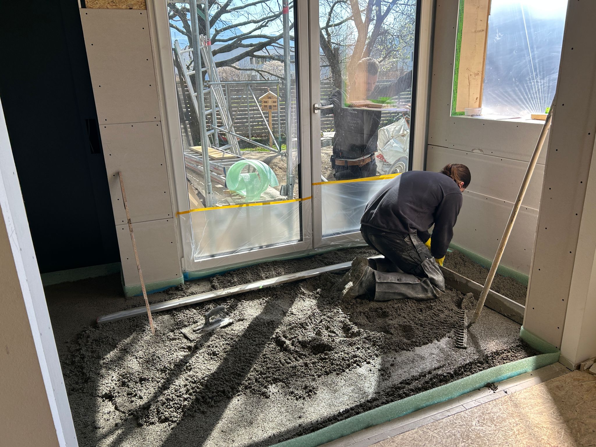 Bodenheizung und Estrich verlegt – Lift für Lukas nimmt weiter Form an