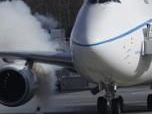 Die 747-8 ist Boeings Antwort auf den Riesen-Flieger A380 des Rivalen Airbus. Die verlängerte und modernisierte Variante des in erster Generation im Jahr 1969 in Dienst gestellten Jumbo-Jets ist einer der Problemfälle des Konzerns. Das Flugzeug liegt rund ein Jahr hinter dem ursprünglichen Zeitplan zurück. Boeing schätzt die Mehrkosten auf 1 Milliarde Dollar. Wegen Nebels und dichter Wolken hatte sich der Start um zweieinhalb Stunden verzögert, klappte dann aber reibungslos.