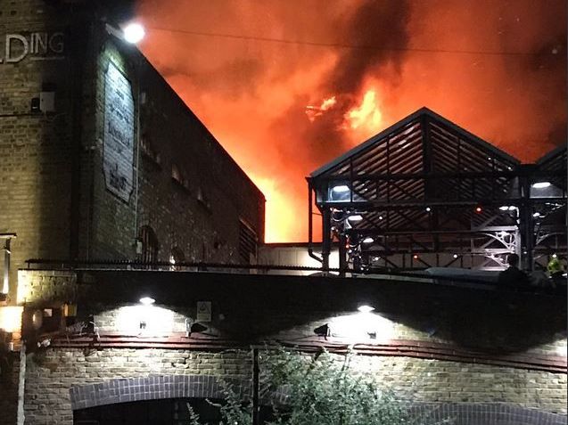 We now have ten fire engines and over 70 firefighters dealing with the #Camden Lock Market fire. Please avoid the area © @CamdenJohnny pic.twitter.com/bdi5HauCLr