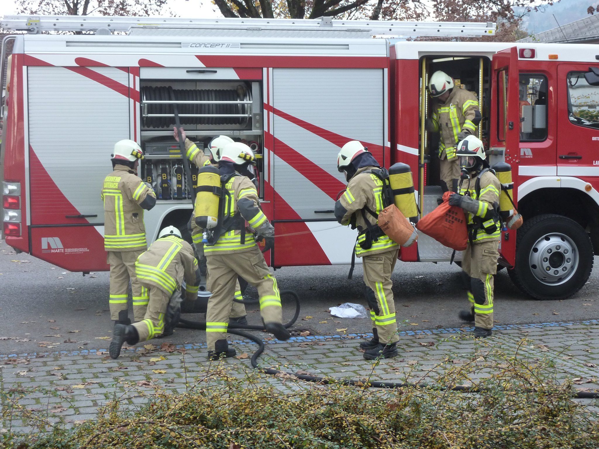 Mit der Annahme eines Brandes im Keller mit starker Rauchentwicklung im gesamten Gebäude startete dann die Abschlussübung der Aktiven. Insgesamt 9 Personen die sich noch im Gebäude befanden galt es aus dem Keller, dem ersten Obergeschoss sowie vom Dach zu retten und in Sicherheit zu bringen. Ein Großaufgebot von Einsatzkräften mit sämtlichen Fahrzeugen unterstützt durch den Steiger der Feuerwehr Wolfurt nahmen sich der Einsatzlage an und konnten durch rasches und präzises Vorgehen die Einsatzstärke der Lauteracher Wehr der zahlreich anwesenden Bevölkerung unter Beweis stellen. Innerhalb kurzer Zeit konnten sämtliche Personen durch die Atemschutztrupps und mit dem Steiger gerettet werden ehe es dann auf dem Dach zu einer Durchzündung kam und ein weiterer Atemschutztrupp über den Steiger auf dem Dach die Brandbekämpfung aufnehmen musste. Bei der anschließenden Übungsbesprechung zeigte sich Bürgermeister Elmar Rhomberg von den gezeigten Leistungen beeindruckt und dankte allen an der Übung beteiligten für ihren Einsatz bei der Abschlussübung und für die Tätigkeit während des ganzen Jahres.