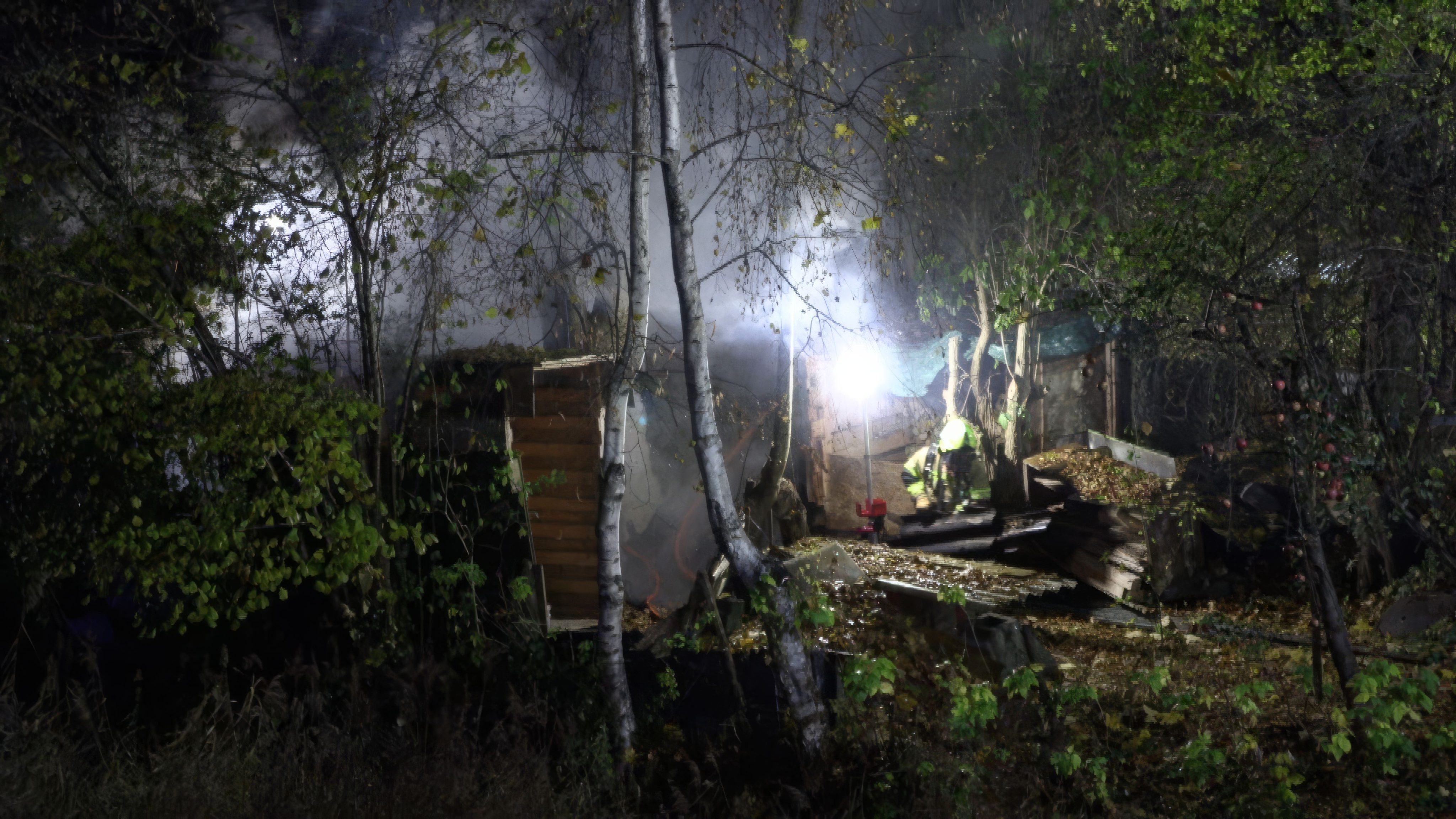 Beim Eintreffen der Feuerwehr hatten die Flammen bereits weite Teile der Hütte erfasst. Mehrere Atemschutztrupps rückten vor und konnten das Feuer rasch unter Kontrolle bringen. Die Arbeiten gestalteten sich laut ersten Informationen aufgrund der engen, stark bewachsenen Umgebung sowie der intensiven Hitzeentwicklung als herausfordernd.