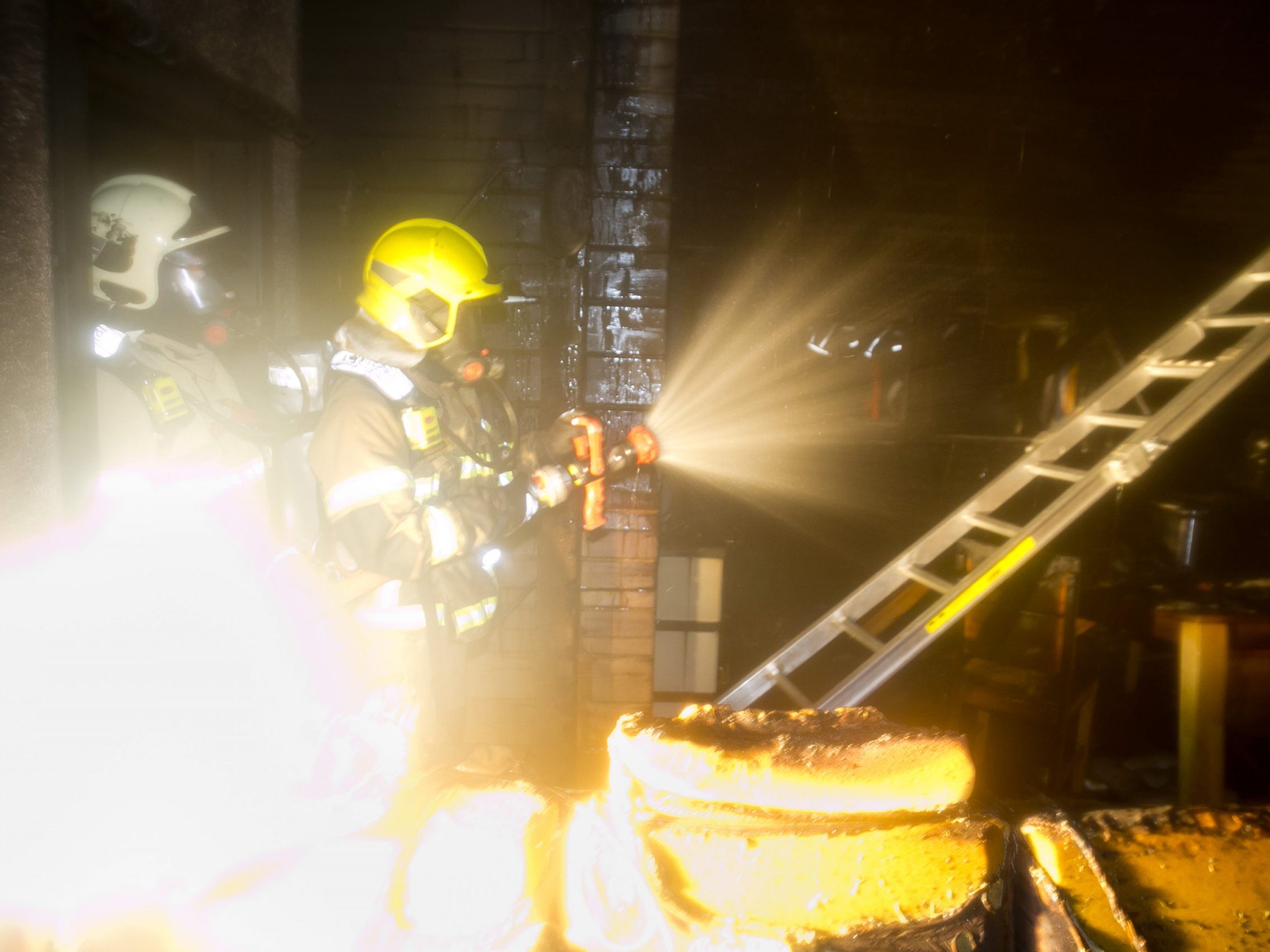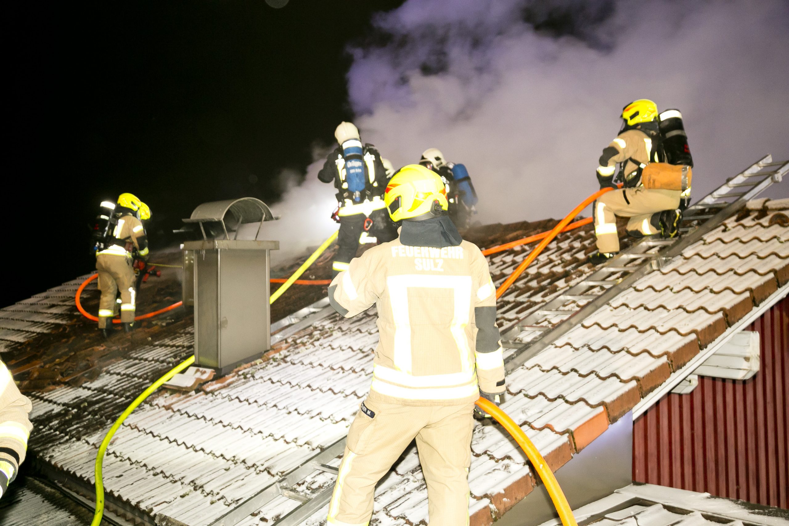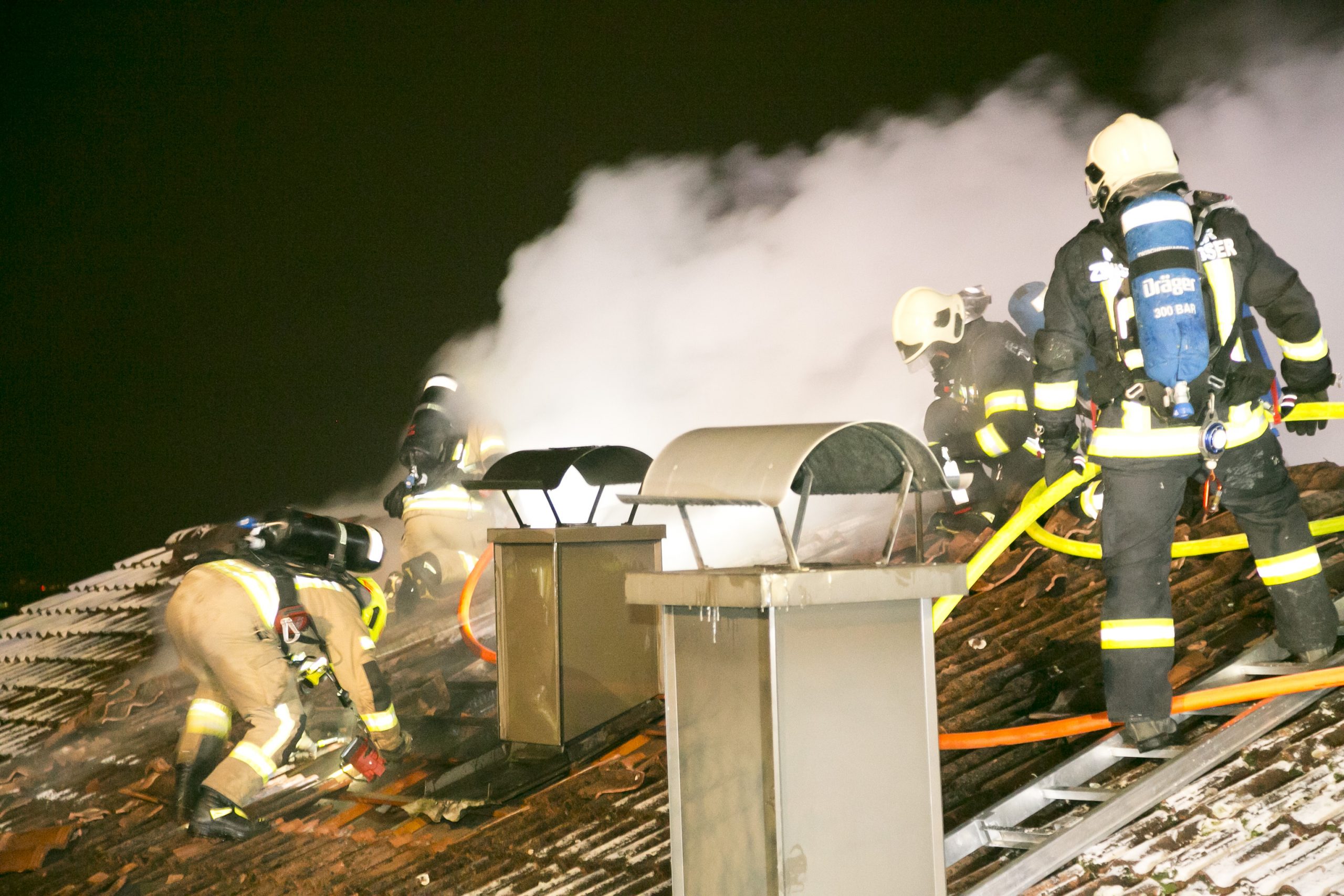 Die herbeigeeilten Einsatzkräfte mussten das Dach öffnen, um die Flammen effektiv bekämpfen zu können.
