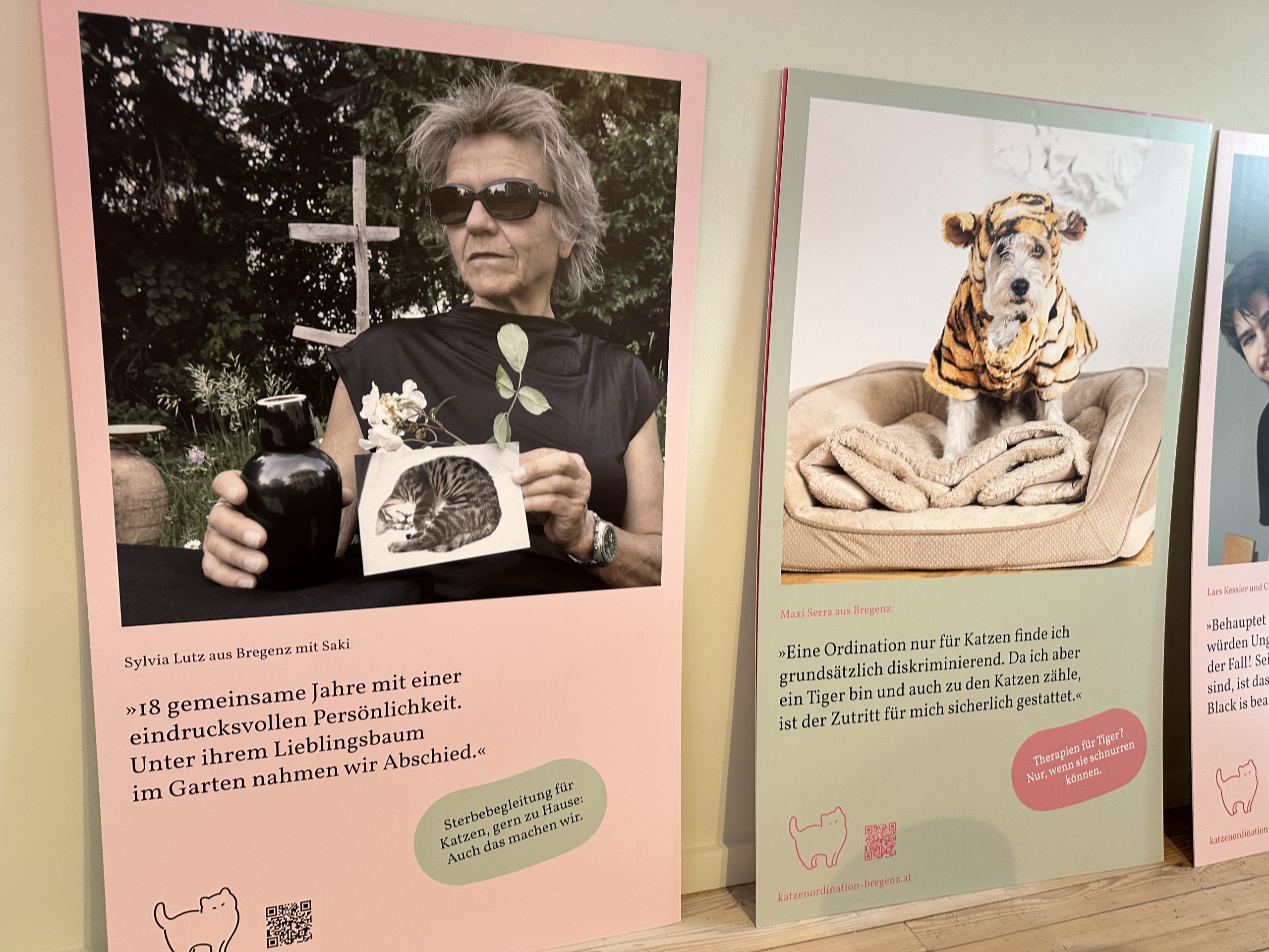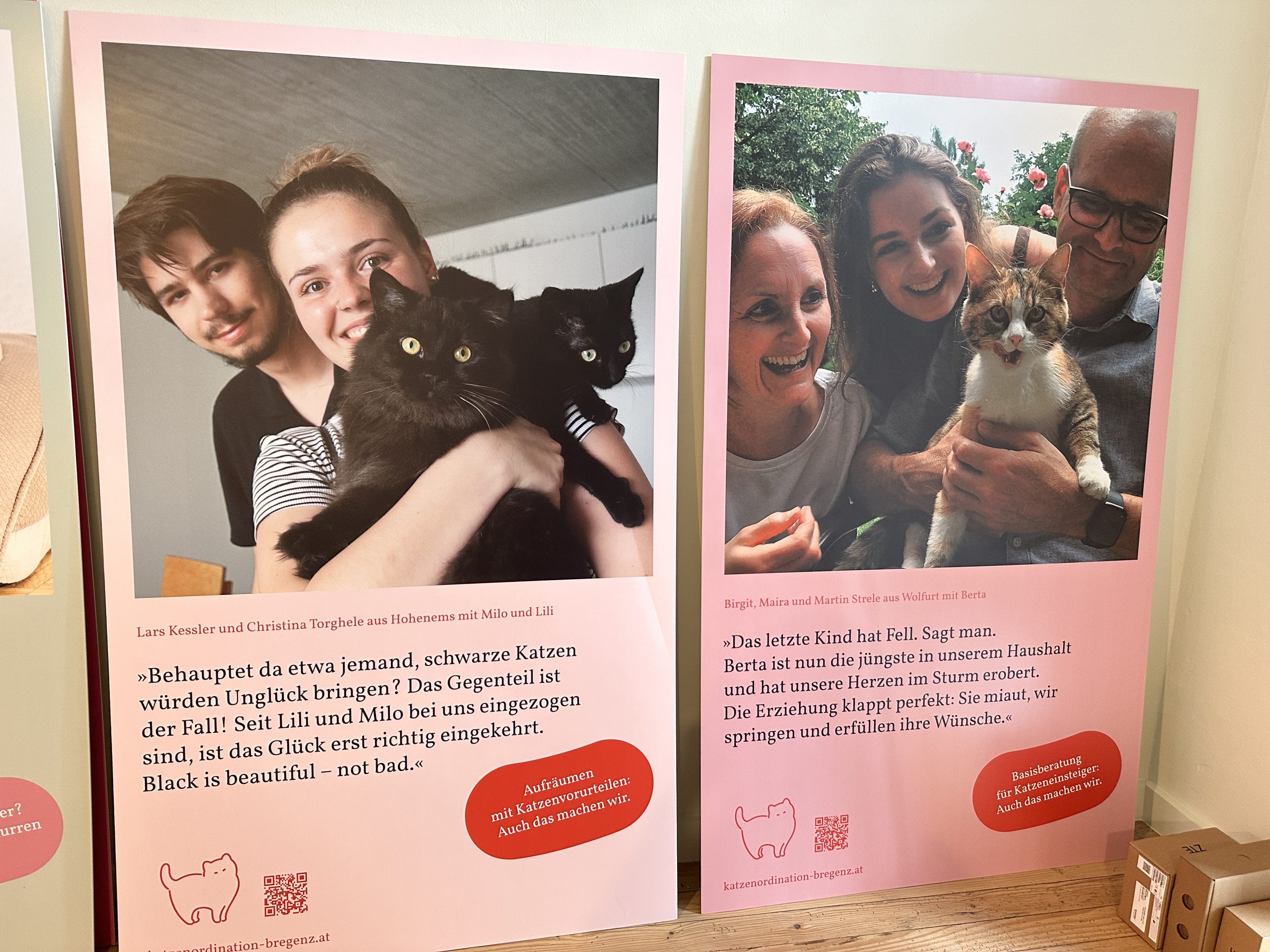 Schon seit dem Sommer ziehen Plakate im Schaufenster die Blicke der Passanten auf sich. Darauf zu sehen sind neben stilisierten Comic-Katzen Menschen aus Warters Bekanntenkreis mit ihren Haustieren. "Ich habe sie gefragt, ob sie Lust haben, ein Foto zu machen", verrät sie. "Es waren eigentlich alle total begeistert von der Idee." Die Aktion bereitete ihr viel Freude, trotz typischer Herausforderungen: "Katzen fotografieren ist ja nicht ganz einfach", meint sie.
