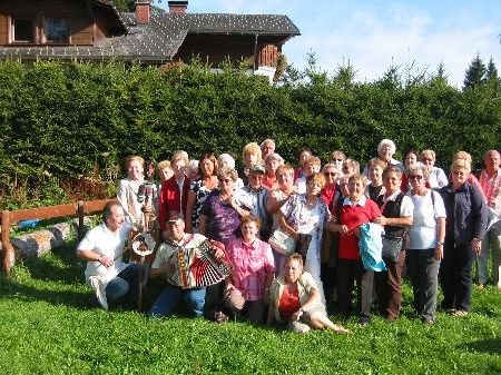 Vielen war die Fahrt über den Eichenberg neu. Bei der Sennerei in Jungholz wurde noch der gute Bergkäse eingekauft. Die Obfrau Elisabeth Mayer bedankte sich beim Reiseleiter Ernst Pertoll mit seiner Erika für den schönen Ausflugund beim Musikus Rudi für Unterhaltung. Zum nächsten Ausflug zum Flughaufen Friedrichshafen am Mittwoch, den 7. Oktober 2009 kann man sich schon jetzt bei Ernst Pertoll, Tel. Nr. 05574/76184 anmelden.