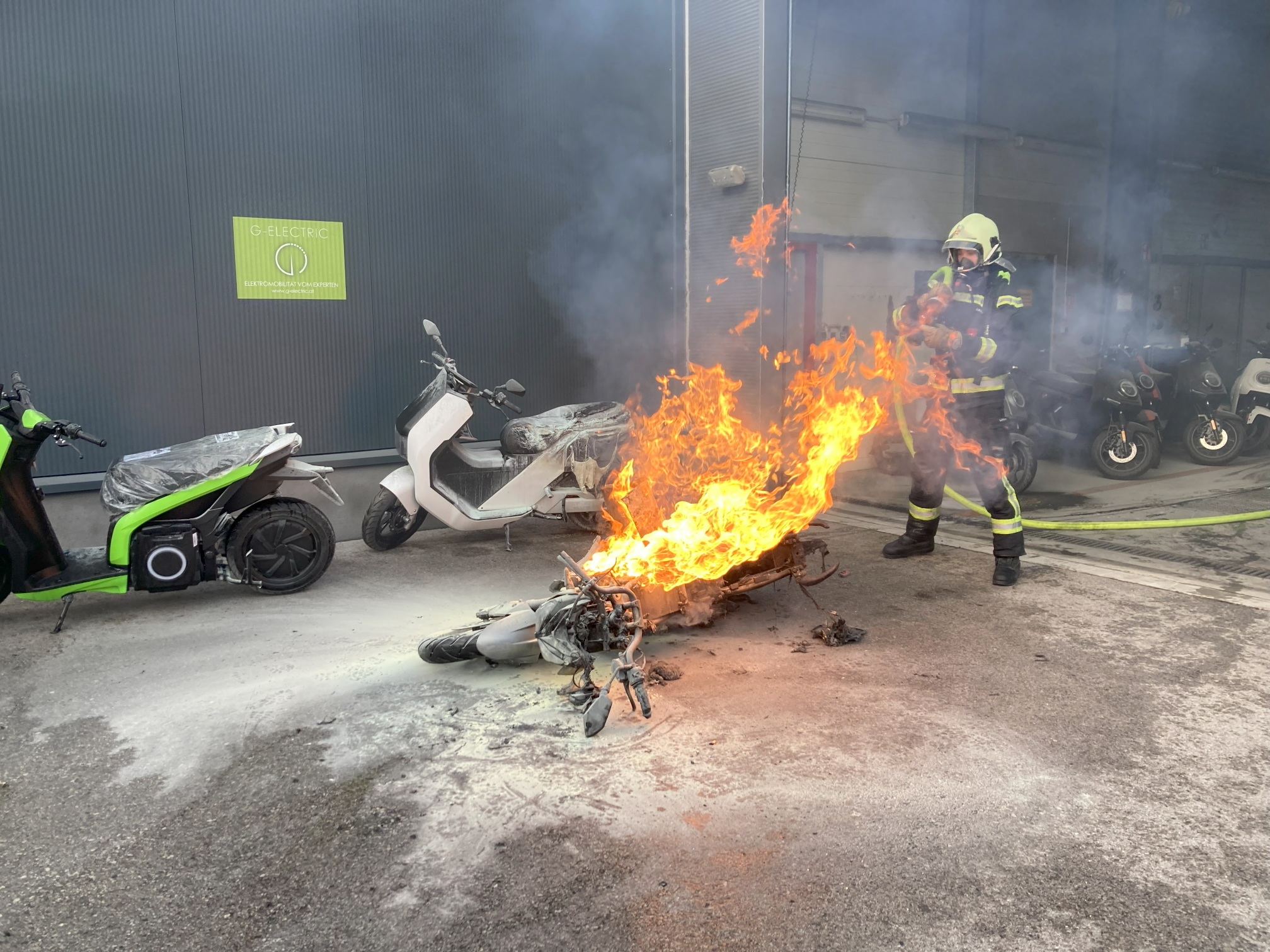 Die Feuerwehr Wr. Neustadt verhinderte das Übergreifen eines Brandes von einem E-Motorrad auf eine Lagerhalle.