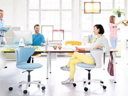 Wie in keinem anderen Bürobereich stehen bei der Projektarbeit die Dialogkultur, Dynamik und Mobilität im Vordergrund. Von Arbeiten am Hocharbeitstisch bis hin zu temporären Arbeitsplätzen – überall dort, wo Menschen zusammenarbeiten und Flexibilität gefragt ist, zeigen sich die Stärken des turn around. Ob als high desk chair oder Drehstuhl: Mit seiner bequemen Polsterung sowie der runden Form schmiegt er sich regelrecht an und gibt auch bei Bewegung angenehmen Halt. Durch das ergonomische Design wird jede Sitzposition sofort als optimal empfunden – ohne dass zuvor etwas eingestellt werden muss. Auch unterschiedliche Beinlängen sind beim turn around high desk chair kein Problem, da sich sein Fußring einfach in der Höhe verschieben lässt.