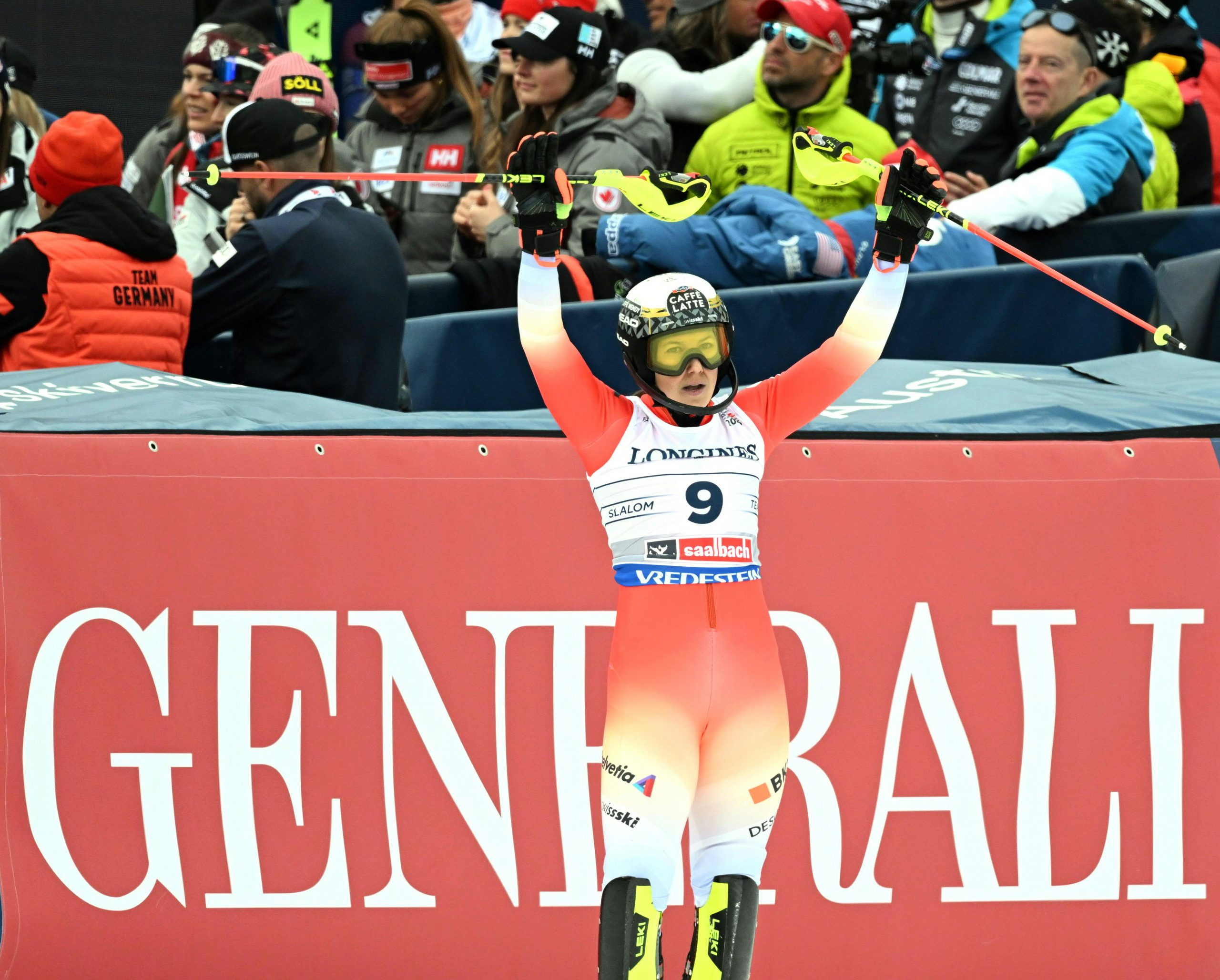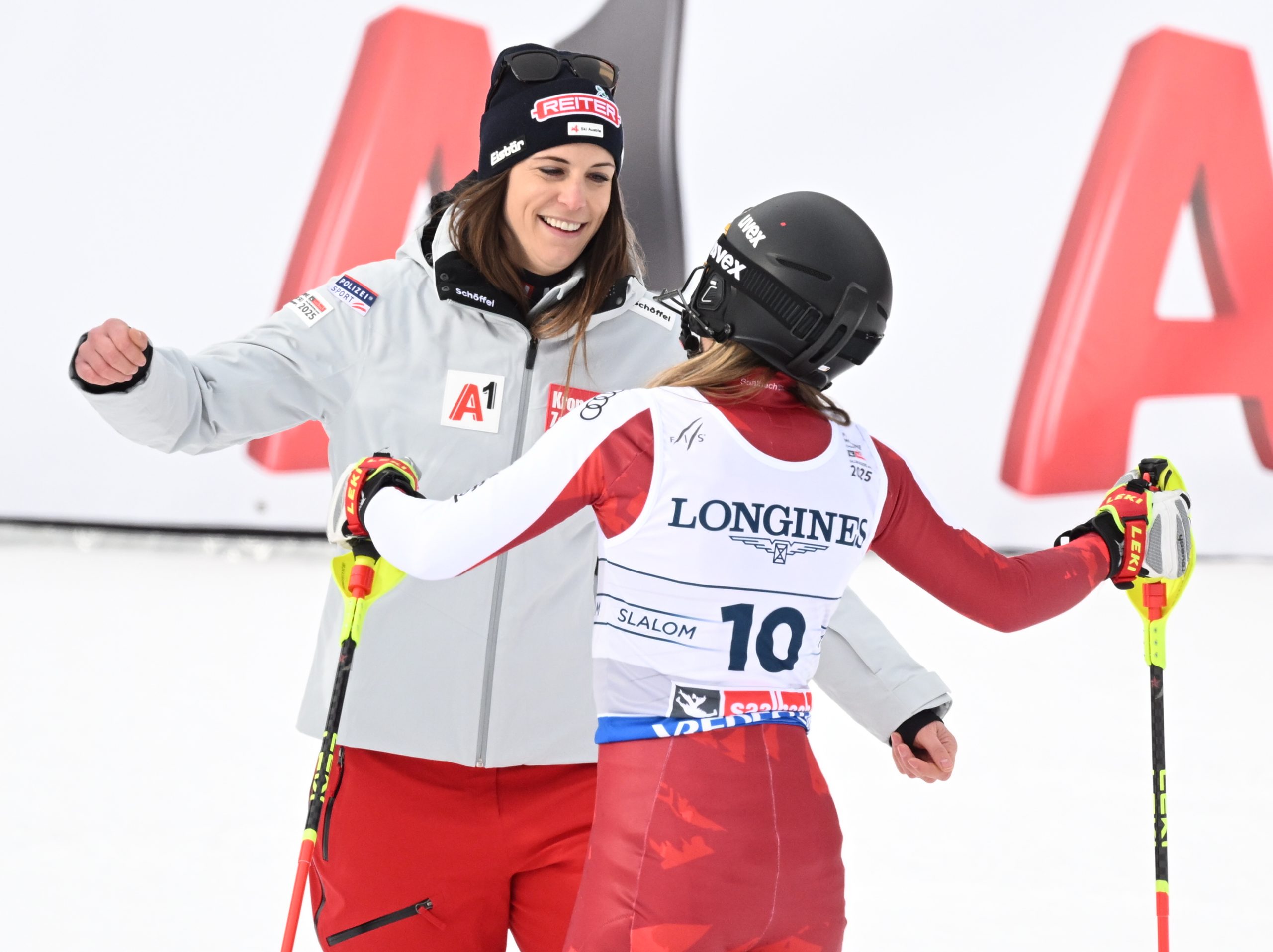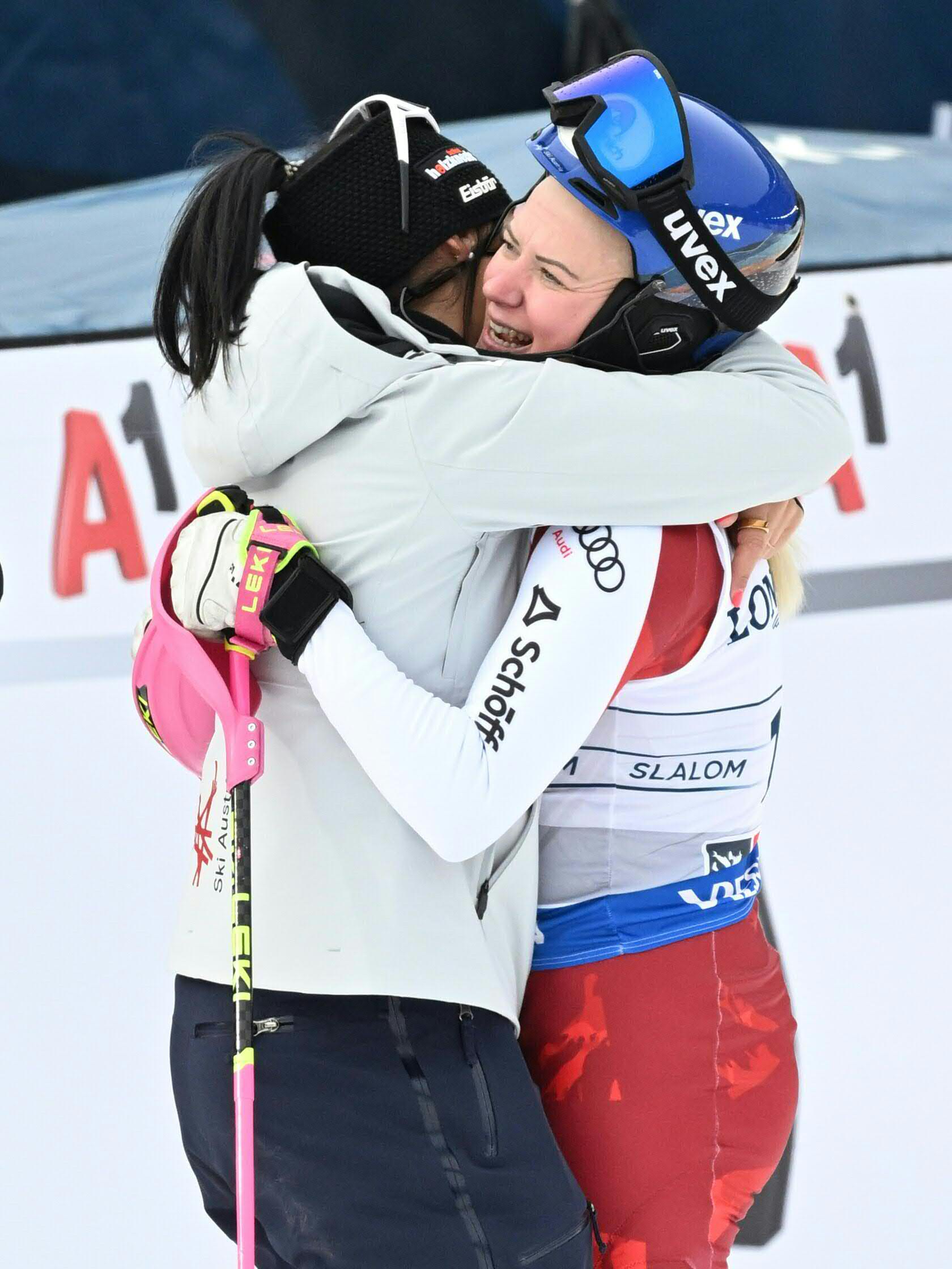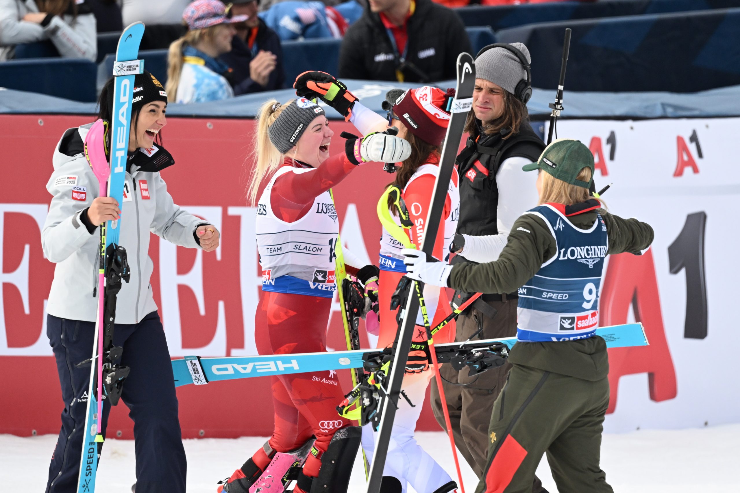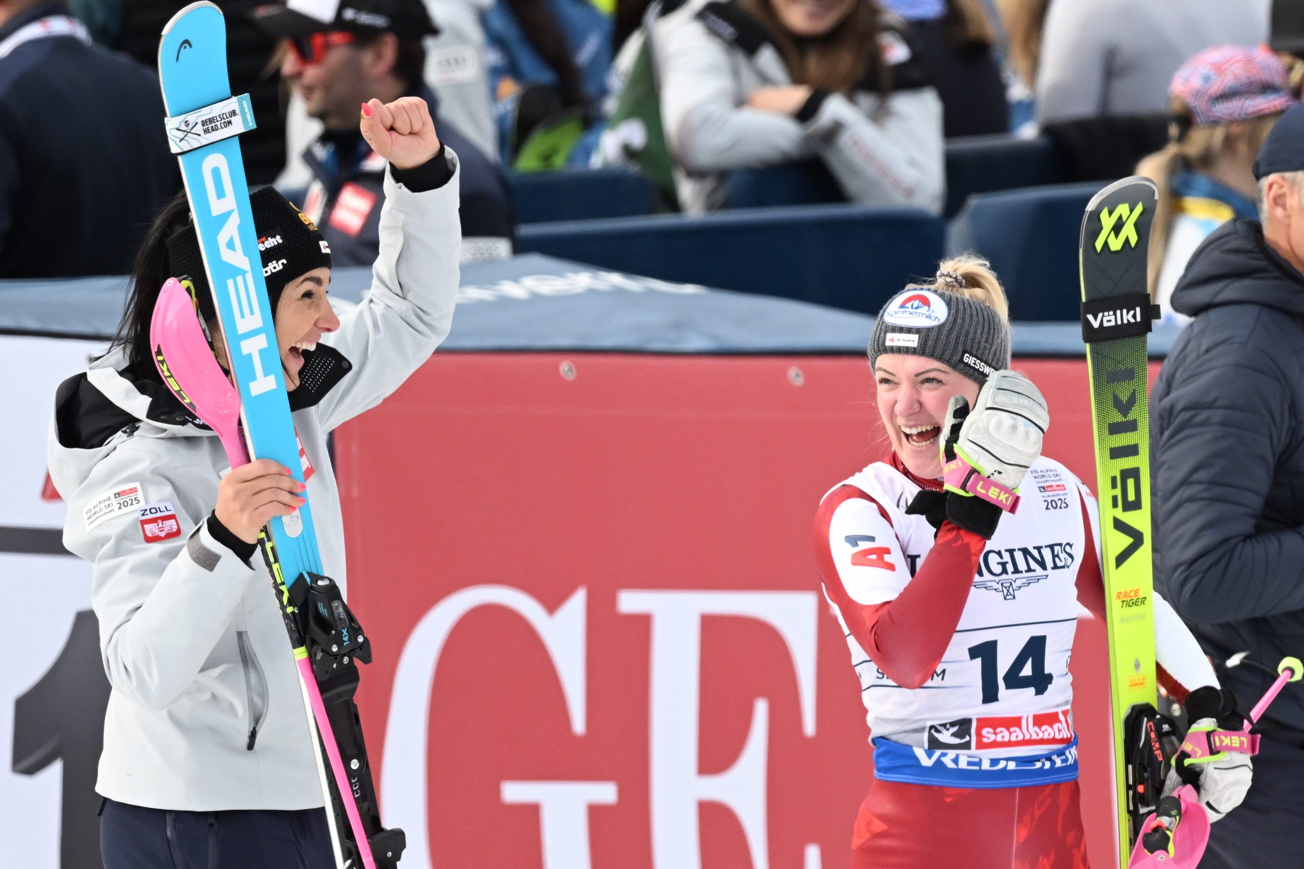 Nichts wurde es aus einer Medaille für Deutschland. Hinter der US-Amerikanerin Lauren Macuga (mit Paula Moltzan/letztlich Vierte) war die Deutsche Emma Aicher Zweite in der Abfahrt gewesen, Lena Dürr brachte den Slalom aber nicht wie geplant runter (17.). Umgekehrt verlief es für die Schweiz: Gut-Behrami kam in der Abfahrt nur auf Platz zwölf, Holdener riss das Ruder noch herum.