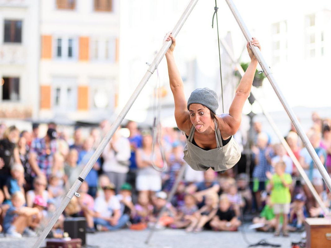 Rund 50 KünstlerInnen aus 15 Nationen sind im Jubiläumsjahr in Feldkirch zu Gast und verwandeln Feldkirch ins größte Freilufttheater Vorarlbergs. Zwei Tage lang werden Solisten und Gruppen das Publikum an zehn Spielplätzen bis in den Abend hinein in eine Welt der Attraktionen und Illusionen entführen. Verrücktes, Schräges, Lautes aber auch Leises steht auf dem Programm – zum Erleben, Bestaunen und Beklatschen. Und auch zum Mimachen: Denn bei den Workshops rund um den Montfortplatz können Besucher selbst Gauklerluft schnuppern.