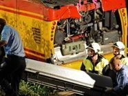 Der Bus mit etwa 50 Passagieren war von der Autobahn abgekommen und hatte sich überschlagen. Die meisten Passagiere konnten sich selbst retten, zwei Menschen wurden eingeklemmt. Die Unfallursache war unklar.