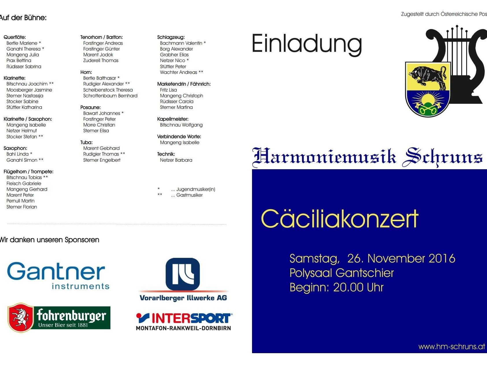 unserem alljährlichen Cäcilliakonzert der Harmoniemusik Schruns im Polysaal Gantschier einladen.
